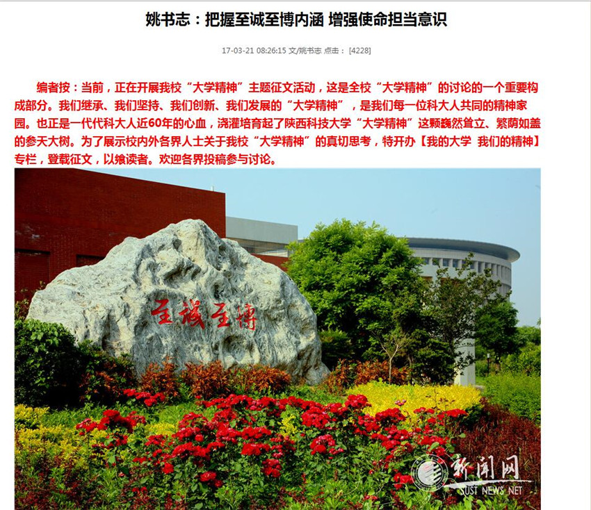 凝聚歷史文化傳統(tǒng)、體現(xiàn)鮮明精神文化特色、匯聚著當代陜科大人意志品質(zhì)的大學精神,就是我們陜科大人文化自信的底氣。