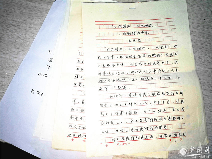 莊關然教授在受邀為學校大學精神的凝練提交建議時,不顧年事已高,于9月13日至15日連寫了《關于“三次創(chuàng)業(yè),兩次搬遷,一次劃轉(zhuǎn)”的由來》等四封信,敘述有關歷史細節(jié),提出自己的觀點??傆?000余字的信件,73歲的老人完全是用工筆正楷書寫的,文字秀麗,頁面整潔??梢韵胂蟮?,老教授是在深思熟慮后一氣呵成,寫出了忠誠,寫就了愛校榮校的真性情。