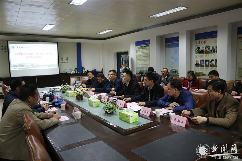 馬建中在致辭中代表學(xué)校向許建新、周國祥、黃祥衛(wèi)三位校友對(duì)母校建設(shè)發(fā)展給予的關(guān)心和指導(dǎo)表示感謝,向他們此次遠(yuǎn)道回家表示熱烈歡迎。他結(jié)合學(xué)校的辦學(xué)歷史介紹了學(xué)?!叭齽?chuàng)兩遷”精神內(nèi)涵及近年來在科學(xué)研究、學(xué)科建設(shè)、人才引進(jìn)、人才培養(yǎng)等方面取得的成績,結(jié)合學(xué)校第二次黨代會(huì)提出的“三步走”發(fā)展戰(zhàn)略展望了學(xué)校未來的發(fā)展目標(biāo)和工作思路,特別介紹了陜西科技大學(xué)中國輕工業(yè)博物館和校史館的建設(shè)意義及功用。他指出,許建新、周國祥和黃祥衛(wèi)三位校友走出校門投身各自的事業(yè),他們秉持“三創(chuàng)兩遷”精神和“至誠至博”品格,勤勉自勵(lì)、敢于奉獻(xiàn)、追求卓越,奉獻(xiàn)國家、服務(wù)社會(huì),成長為社會(huì)和行業(yè)的中堅(jiān)力量,為母校的發(fā)展增光添彩。馬建中強(qiáng)調(diào),校友是學(xué)校的寶貴財(cái)富和重要依靠,母校的發(fā)展進(jìn)步離不開校友的支持與幫助。希望今后許建新、周國祥、黃祥衛(wèi)等校友與母校進(jìn)一步加強(qiáng)聯(lián)系,開展多層次合作與交流,攜手為中國輕工行業(yè)和地方經(jīng)濟(jì)發(fā)展做出應(yīng)有的貢獻(xiàn),助力學(xué)校“三步走”發(fā)展戰(zhàn)略穩(wěn)步推進(jìn),為創(chuàng)造陜科大和校友更加美好的明天共同奮斗。今年是我校60周年校慶,馬建中誠摯邀請(qǐng)校友們屆時(shí)返校,繼續(xù)心系母校、情牽母校,學(xué)校也將進(jìn)一步加大聯(lián)絡(luò)校友工作的力度,竭盡全力為校友做好服務(wù)工作。
