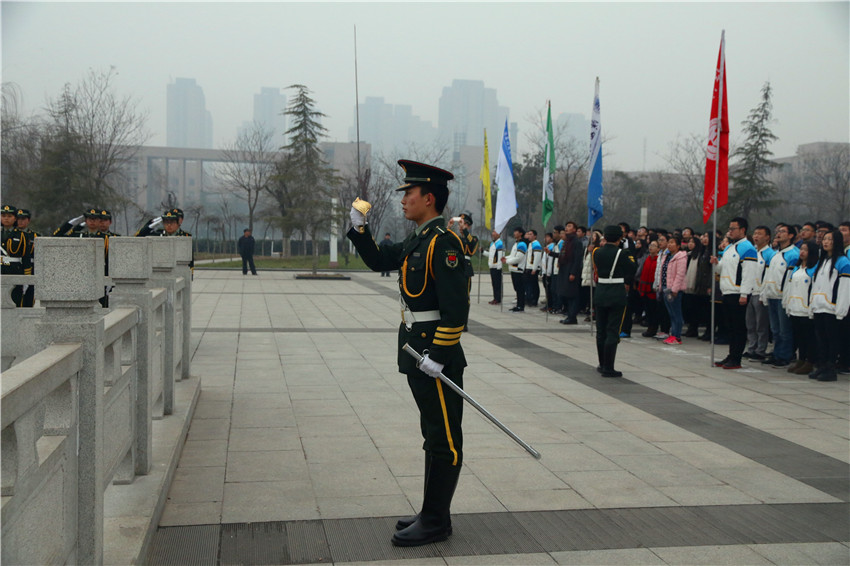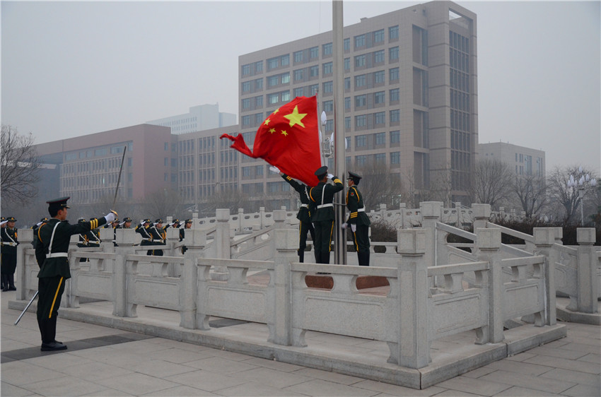 上午8點整,隨著指揮員一聲“出旗”的口令,護旗方隊邁著堅實而雄健的步伐,精神抖擻地護衛(wèi)著國旗走向國旗臺。“升國旗,奏唱國歌”一聲令下,伴隨著雄壯的義勇軍進行曲和嘹亮的國歌聲,五星紅旗冉冉升起。全體師生深情注視,向國旗致以莊嚴的敬禮,共同慶祝新年的到來,祝愿偉大祖國日益繁榮富強,祝愿學(xué)校在新年里開創(chuàng)更加美好的明天。我校國旗護衛(wèi)隊隊員、材料學(xué)院學(xué)生代表武慕侖做國旗下演講,號召青年學(xué)子將愛國熱情轉(zhuǎn)化為實際行動,從自身做起,上好每一節(jié)課,做好每一次作業(yè),走好新一代人的長征路。