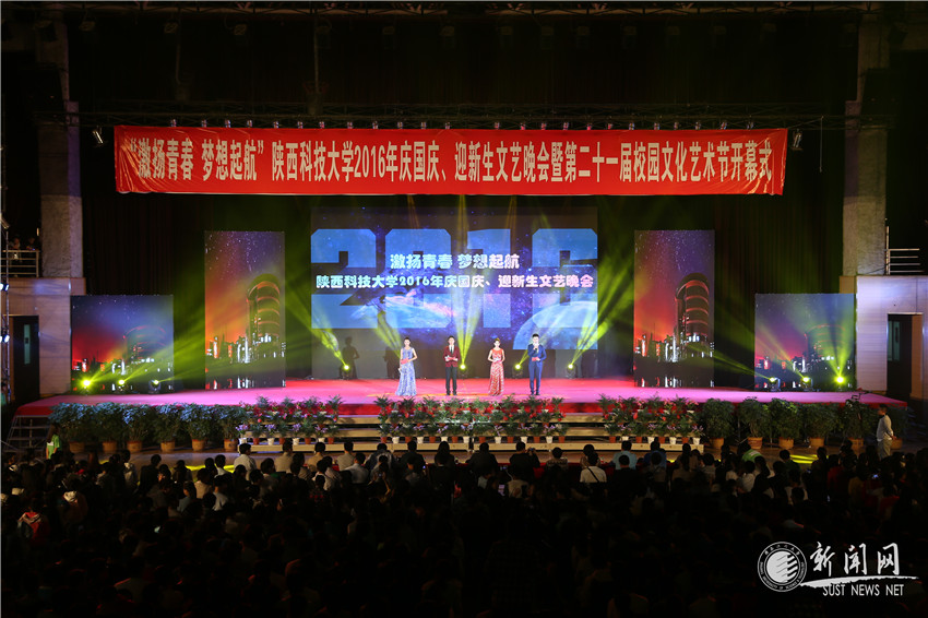9月29日晚,由校團(tuán)委、學(xué)工部、體育部聯(lián)合主辦,各學(xué)院團(tuán)委、校學(xué)生會(huì)承辦的“激揚(yáng)青春 夢(mèng)想起航”陜西科技大學(xué)2016年慶國(guó)慶、迎新生文藝晚會(huì)暨第二十一屆校園文化藝術(shù)節(jié)開(kāi)幕式在我校文體館舉行。校長(zhǎng)姚書(shū)志、校黨委副書(shū)記溫鋒、總會(huì)計(jì)師徐曉峰、校各部門負(fù)責(zé)人、各學(xué)院學(xué)生工作和團(tuán)工作負(fù)責(zé)人,新生輔導(dǎo)員和2016級(jí)新生共同觀看了晚會(huì)。