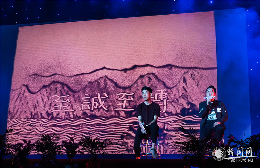 晚會(huì)在一曲悠揚(yáng)舒緩的吉他彈唱《北未央》中拉開(kāi)序幕,三位男生用精致深沉的嗓音唱出了科大的美景和校園生活的美好,配以現(xiàn)場(chǎng)大屏幕直播的沙畫(huà)創(chuàng)作,讓觀眾心馳神往,身臨其境;獨(dú)舞《詠蓮》、小品《送禮》作為我校報(bào)送第五屆全國(guó)高校廉政文化作品中十項(xiàng)優(yōu)秀作品中的兩件,用藝術(shù)的方式弘揚(yáng)了時(shí)代的清風(fēng)正氣;相聲《小目標(biāo)》,以大學(xué)生身邊防推銷詐騙、樹(shù)立優(yōu)良學(xué)風(fēng)的生動(dòng)實(shí)例,風(fēng)趣幽默的詮釋了“踏踏實(shí)實(shí)做人、扎扎實(shí)實(shí)做事”的人生真諦;詩(shī)朗誦《以青春的名義宣誓》,講述了我校研究生支教團(tuán)平凡、質(zhì)樸的支教生活,一張張鮮活的笑臉、一幅幅感人的畫(huà)面,研支團(tuán)用承諾與擔(dān)當(dāng),踐行了志愿者精神和他們的誓言:“要讓生命的花朵,盛開(kāi)在祖國(guó)最需要的地方”;令人捧腹的小品、華美活力的服裝秀、新疆少數(shù)民族同學(xué)的舞蹈、鏗鏘有力的武術(shù)表演,以及拉丁舞隊(duì)絢麗的群舞等表演皆盡顯我校學(xué)生的才藝與激情。