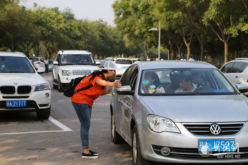 在迎新大道上,迎新志愿者們在擁擠的人潮中不間斷的忙碌著,在學(xué)校的主要交通干線上,協(xié)管交通的保衛(wèi)處工作人員與志愿者也頂著炎炎烈日疏導(dǎo)交通秩序,為新生及家長提供舒暢的交通環(huán)境,用自己辛勤的汗水保證了迎新工作的交通順利。