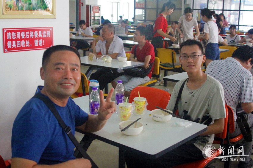 家住河南省的張翼遠早在8月21日就已經(jīng)隨父親到達了學(xué)校,提前將開學(xué)需處理的事情辦完的他們在食堂正慢慢地品味著校餐?!皝淼娇拼?,我總體感覺是環(huán)境非常不錯,這兒的景美、飯香、人好,給新生的服務(wù)也特別周到?!皬埌职珠_心地說道。張翼遠也說:“新的開學(xué),我對自己的要求就是好好學(xué)習(xí),最好能拿到獎學(xué)金?!?br />