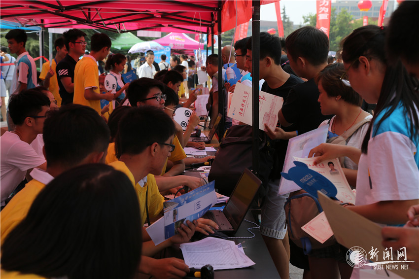今年的迎新由于提前開通了“陜西科技大學(xué)迎新網(wǎng)”,啟動數(shù)字迎新,新生到校前通過網(wǎng)上可提前選取宿舍、軍訓(xùn)服、是否接站等事宜,這給現(xiàn)場報到提供了很大的方便。據(jù)悉,從8月11日開始共有2800名新生通過網(wǎng)上平臺繳費,到目前為止共有1276名新生和1838位學(xué)生家長提前預(yù)約火車站接車,而在8月19日預(yù)定宿舍通道關(guān)閉時,有超過80%的新同學(xué)在網(wǎng)上已經(jīng)選好自己的宿舍,對于由于種種原因而沒有預(yù)定的同學(xué),學(xué)校也給予了方便,在學(xué)院報名點掃碼就可以得知自己的住宿信息。除此而外,今年迎新中,本科生實現(xiàn)“全綠色通道”,經(jīng)濟困難學(xué)生可以先報到上學(xué),無須現(xiàn)場提供相關(guān)材料證明。