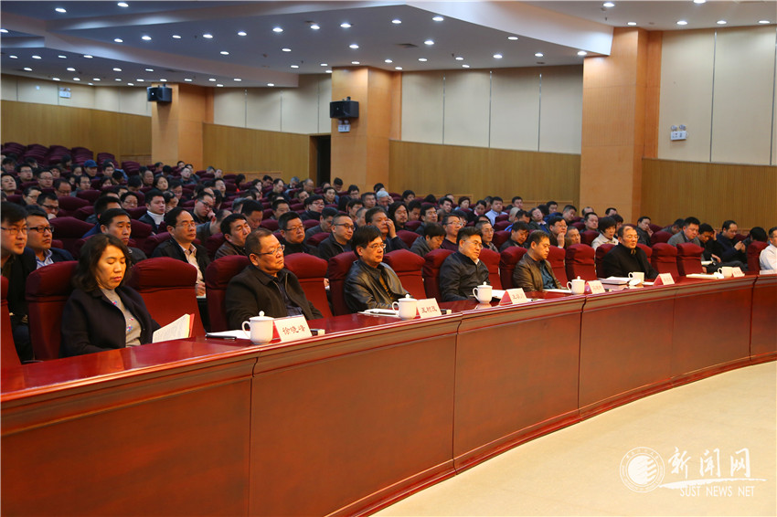 校黨政班子成員,各院部黨政班子成員、教師黨支部書(shū)記,黨群部門(mén)正科級(jí)以上干部、其他部門(mén)(單位)主要負(fù)責(zé)人,學(xué)生工作系統(tǒng)全體人員,思政部全體教師及管理人員等300余人參加會(huì)議。