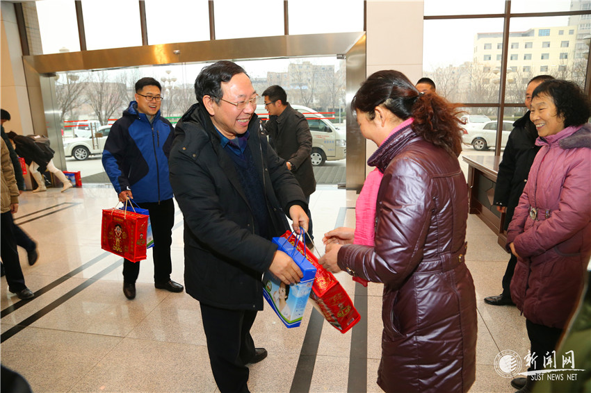 “大家辛苦了!祝大家雞年大吉,身體健康,闔家幸福!”1月28日農(nóng)歷大年初一早上,伴隨著校長(zhǎng)姚書(shū)志、副校長(zhǎng)馬建中看望慰問(wèn)春節(jié)值班教職工的腳步,這真摯火熱的祝福傳遍了整個(gè)科大校園,校園內(nèi)處處洋溢著新春佳節(jié)的喜慶氛圍。