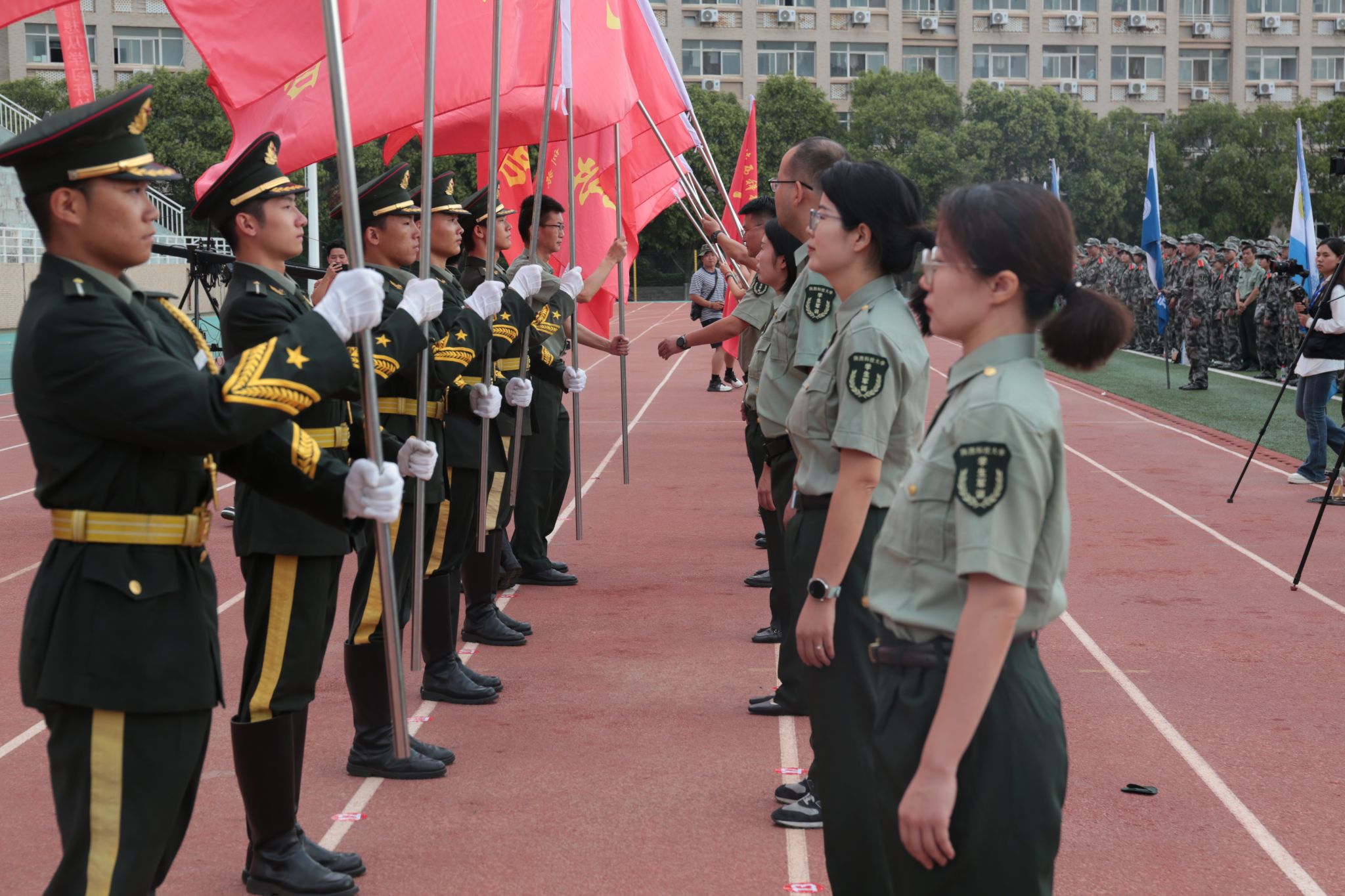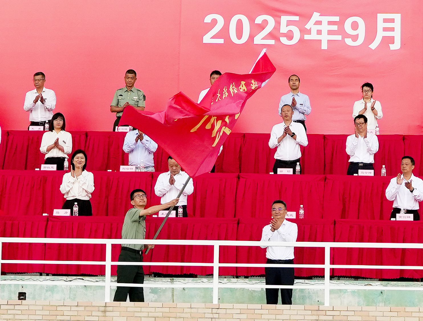 為充分發(fā)揮軍訓(xùn)育人成效,學(xué)校成立2025年本科新生軍訓(xùn)旅,樊建武向2025級(jí)軍訓(xùn)旅頒授軍訓(xùn)旅旅旗,軍訓(xùn)旅政委向各軍訓(xùn)營(yíng)授營(yíng)旗。