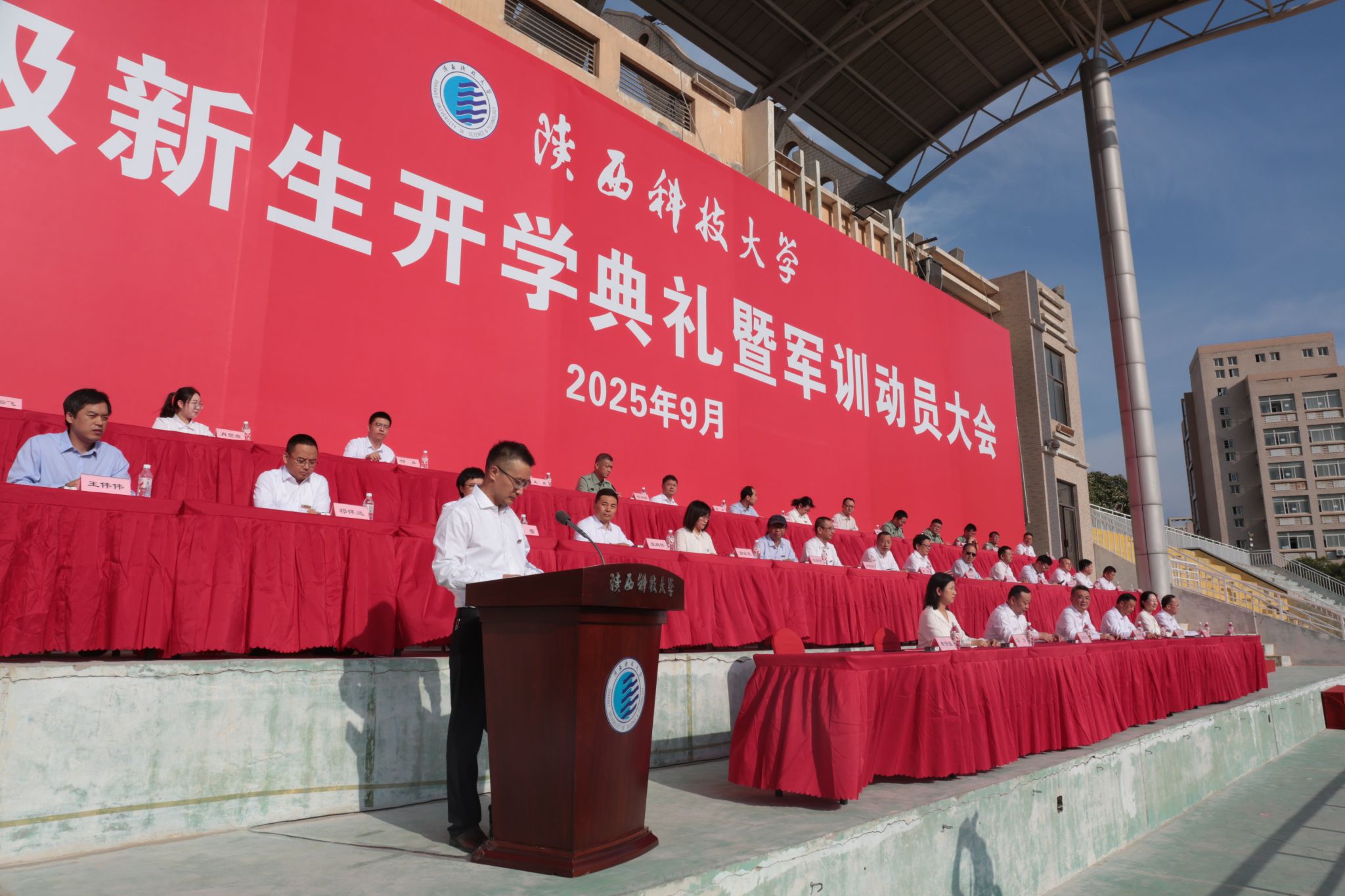 9月2日上午,陜西科技大學(xué)2025級(jí)新生開(kāi)學(xué)典禮暨軍訓(xùn)動(dòng)員大會(huì)在標(biāo)準(zhǔn)田徑場(chǎng)舉行。黨委書(shū)記樊建武,校長(zhǎng)黃劍鋒,黨委副書(shū)記王道安,黨委副書(shū)記、紀(jì)委書(shū)記、監(jiān)察專(zhuān)員羅瑩,副校長(zhǎng)黃海峙、馬力及各部門(mén)、各學(xué)院主要負(fù)責(zé)人、師生代表出席典禮。樊建武為2025年軍訓(xùn)旅頒授軍訓(xùn)旅旅旗,黃劍鋒發(fā)表講話。副校長(zhǎng)費(fèi)貴強(qiáng)主持典禮。