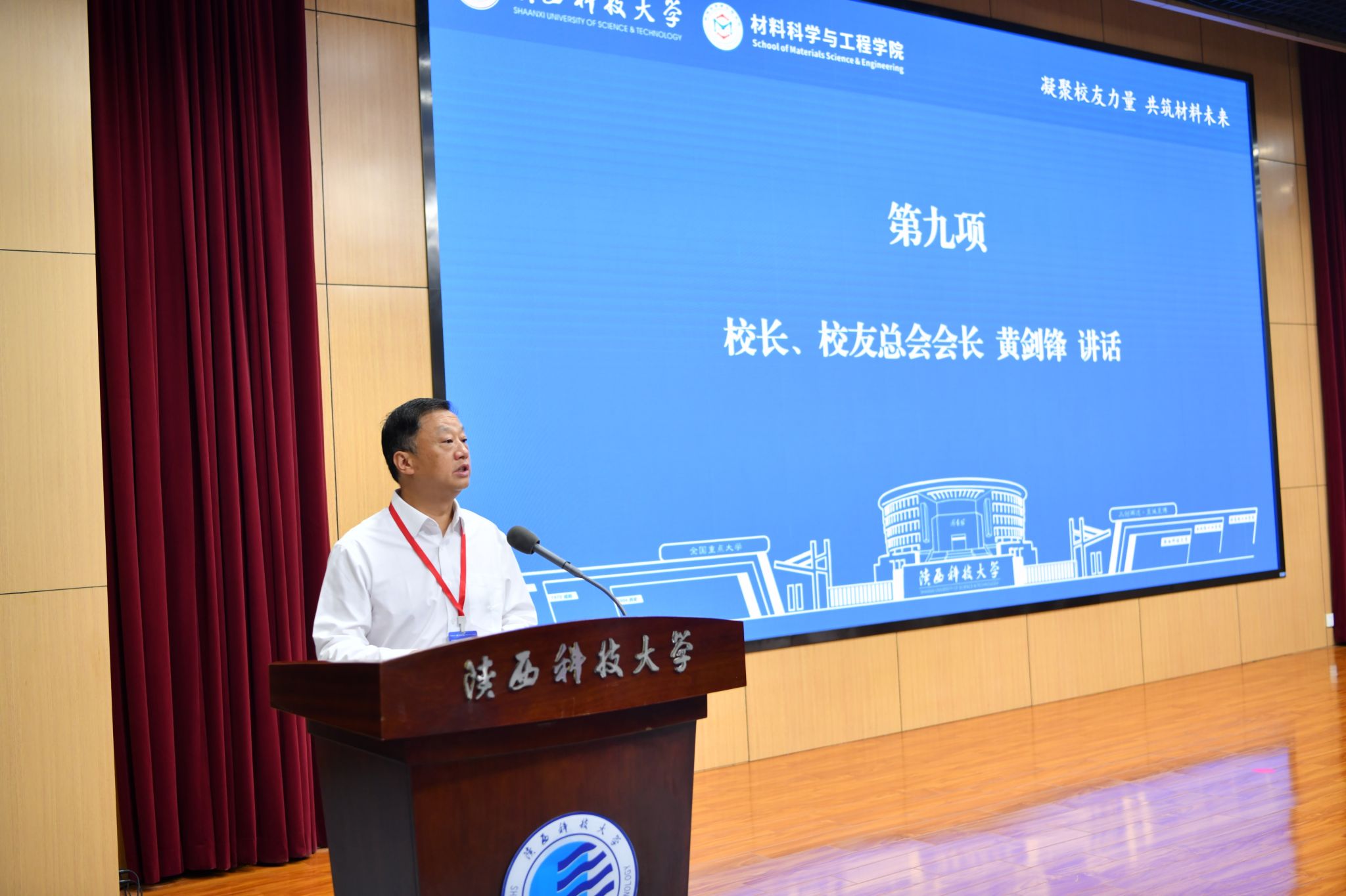 黃劍鋒在講話中向與會校友表示熱烈歡迎,并介紹了學(xué)校和材料學(xué)院近年來在學(xué)科建設(shè)、人才培養(yǎng)、科學(xué)研究等方面取得的成績。他強(qiáng)調(diào),校友是母校的寶貴資源和財(cái)富,更是母校建設(shè)發(fā)展過程中最可信賴與依靠的重要支持力量。希望廣大校友以校友會成立為契機(jī),傳承“三創(chuàng)兩遷”精神與“至誠至博”校訓(xùn),講好母校故事,筑牢校友與母校間情感、事業(yè)、價(jià)值的聯(lián)結(jié)紐帶,將個(gè)人專業(yè)優(yōu)勢、行業(yè)資源與社會影響力轉(zhuǎn)化為助力學(xué)?!半p一流”建設(shè)與高質(zhì)量發(fā)展的堅(jiān)實(shí)力量。