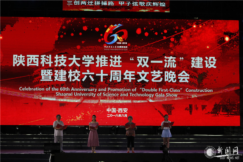 “六十載滄桑砥礪,一甲子春華秋實(shí)”,2018年6月26日晚8時(shí),陜西科技大學(xué)60年校慶“三創(chuàng)兩遷拼搏路,甲子弦歌慶輝煌”主題演出在西安校區(qū)標(biāo)準(zhǔn)田徑場(chǎng)隆重舉行。出席晚會(huì)的領(lǐng)導(dǎo)嘉賓,廣大校友與近萬(wàn)名師生齊聚一堂,共襄盛會(huì),同賀陜西科技大學(xué)六十華誕。