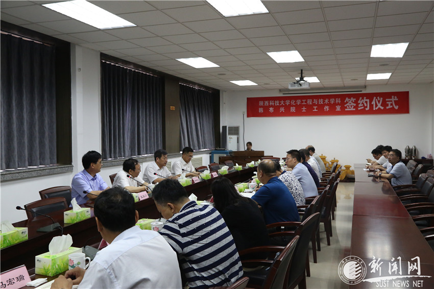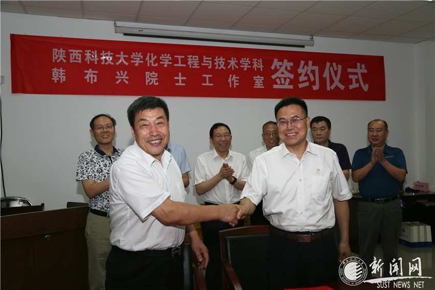 韓布興院士對在陜西科技大學(xué)設(shè)立自己的院士工作室感到十分高興和激動,感謝學(xué)校對院士工作室建設(shè)的高度重視。他對學(xué)校近年來各項(xiàng)事業(yè)的迅速發(fā)展和綜合實(shí)力的不斷提升給予了高度評價。他表示,院士工作室的設(shè)立既是一份責(zé)任,也是一種壓力,有利于雙方優(yōu)勢互補(bǔ),實(shí)現(xiàn)共同目標(biāo)。他從今天起就成為陜西科技大學(xué)大家庭中的一員,非常愿意為推動學(xué)校學(xué)科發(fā)展出力?;瘜W(xué)化工與綠色化學(xué)與技術(shù)的結(jié)合發(fā)展是當(dāng)前非常重要的研究領(lǐng)域,院士工作室將瞄準(zhǔn)學(xué)科前沿,進(jìn)一步凝練研究方向,為努力提升化學(xué)學(xué)科的特色優(yōu)勢做出力所能及的貢獻(xiàn),使學(xué)校在相關(guān)學(xué)科領(lǐng)域走在全國前列。