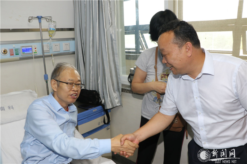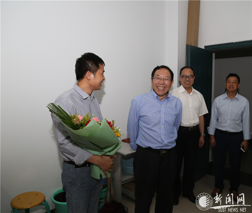校黨委書記姚書志、副校長黃劍鋒(右一)看望校學(xué)術(shù)骨干、電信學(xué)院雷濤教授