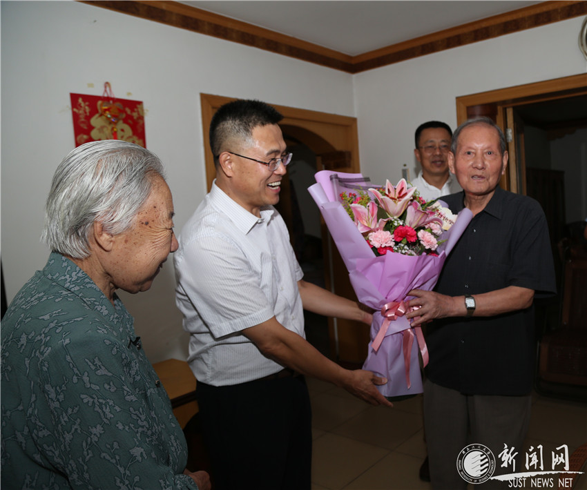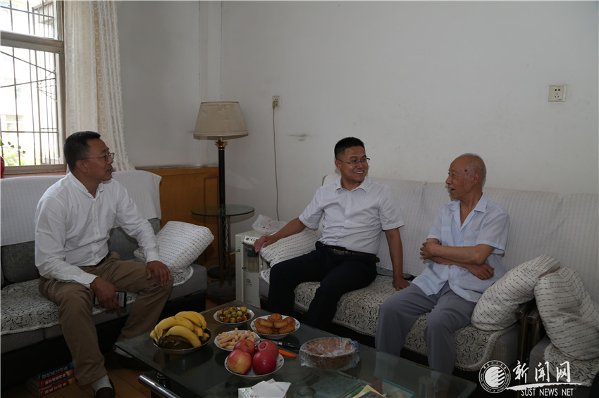 校長馬建中(中)、校黨委副書記溫鋒(左一)看望楊宗邃教授