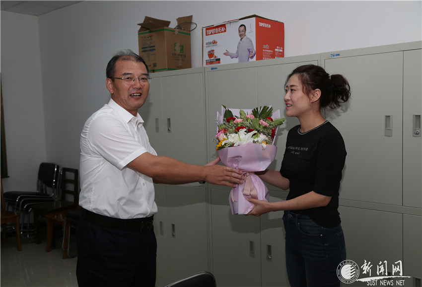 副校長李志健為陜西省教學(xué)名師、省師德先進(jìn)個(gè)人、省教書育人楷模、機(jī)電工程學(xué)院張功學(xué)教授獻(xiàn)花