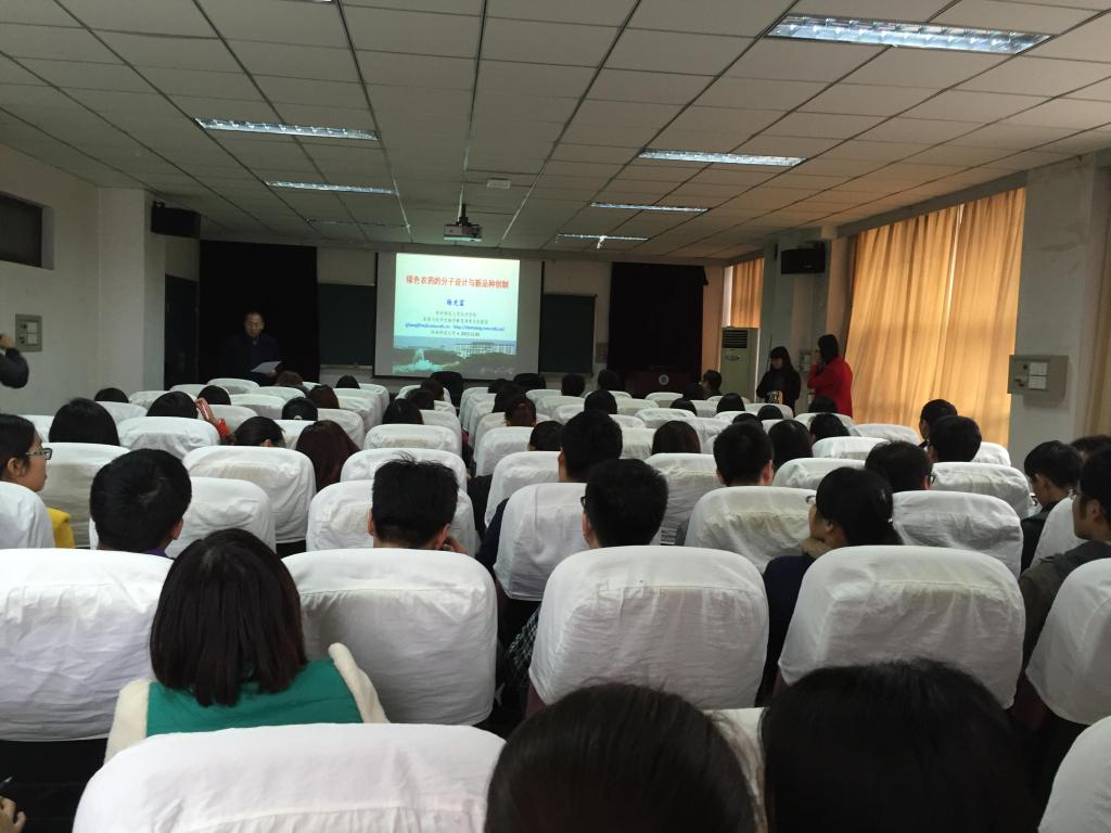 楊教授詳細介紹了農(nóng)藥在國家穩(wěn)定和經(jīng)濟發(fā)展中所處的戰(zhàn)略地位以及綠色農(nóng)藥分子設計面臨的關鍵科學問題,與廣大師生分享了他創(chuàng)制“苯噻菌酯”、“氯苯醚酰胺”、“氟苯醚酰胺”三個農(nóng)藥候選新品種的研究過程和科研體會。會后還與師生進行了廣泛深入的交流。