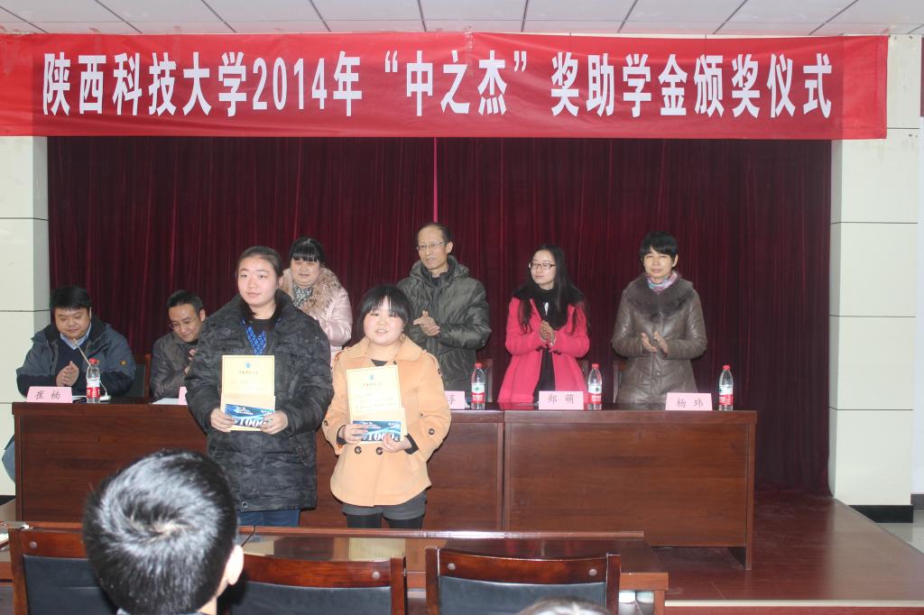 2014年度“中之杰”獎(jiǎng)助學(xué)金由我院工業(yè)、物流教研室教師牽線搭橋,浙江中之杰軟件技術(shù)有限公司西安分公司首次在我院設(shè)立了此項(xiàng)獎(jiǎng)助學(xué)金。獎(jiǎng)勵(lì)優(yōu)秀學(xué)業(yè)學(xué)生14名,幫助家庭經(jīng)濟(jì)困難學(xué)生2名,發(fā)放共計(jì)12000元。