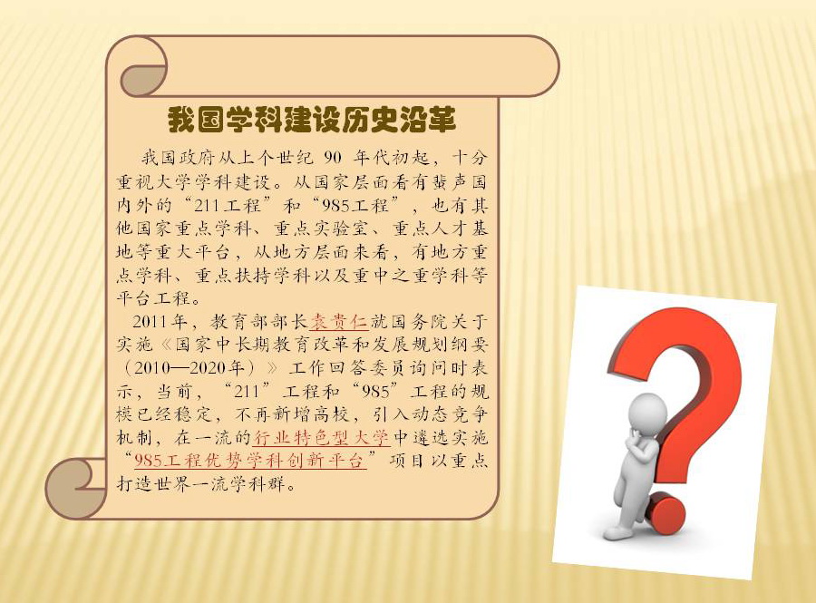 【導語】 學科建設是高校建設和發(fā)展的核心,體現(xiàn)著一所高校的水平、特色、建設層次。當前,圍繞建設“一流大學、一流學科”的發(fā)展目標,全校上下正在為通過2016年全國一級學科評估工作做最后的沖刺。藉此,黨委宣傳部陸續(xù)推出學科建設【圖說】系列相關報道,澄清關于學科和學科建設的相關認識,營造濃郁的學科及學科建設“人人關注、人人參與、人人上心”的校園輿論氛圍。(核稿:任工昌 方潤澤 策劃編輯:杜楊 學生編輯:康松磊)