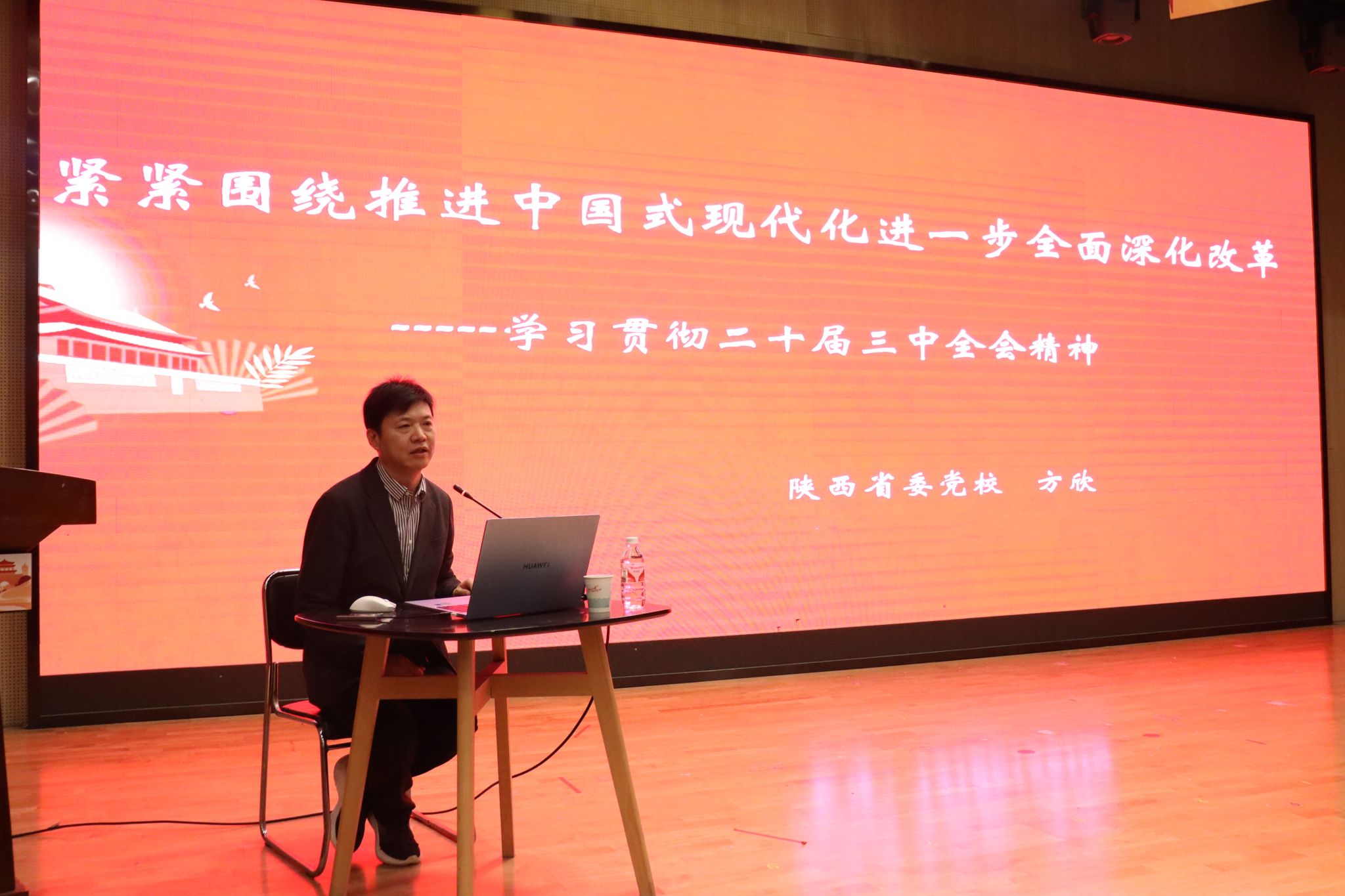 會后,陜西省委黨校方欣教授作了題為“緊緊圍繞推進(jìn)中國式現(xiàn)代化進(jìn)一步全面深化改革——學(xué)習(xí)貫徹黨的二十屆三中全會精神”的報(bào)告。方教授圍繞“全面深化改革的意義”“各領(lǐng)域改革重點(diǎn)”和“黨的領(lǐng)導(dǎo)”三個(gè)方面對二十屆三中全會精神的核心內(nèi)容和重要意義進(jìn)行了深入解讀,通過大量數(shù)據(jù)對比和事例論證,激勵(lì)廣大研究生黨員積極投身中國式現(xiàn)代化建設(shè)的火熱實(shí)踐,充分展現(xiàn)科大青年擔(dān)當(dāng)作為。