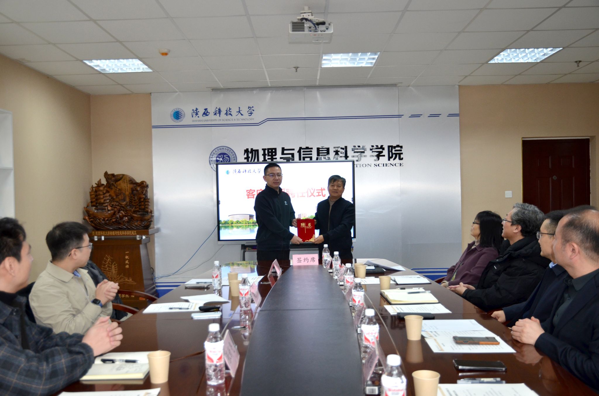 費貴強(qiáng)介紹了陜西科技大學(xué)發(fā)展歷程及學(xué)科專業(yè)情況,對深圳量旋科技有限公司支持我校教育事業(yè)發(fā)展表示感謝,并希望物理學(xué)院在量子信息實驗室建設(shè)、人才培養(yǎng)、科學(xué)研究等方面不斷深化與深圳量旋科技有限公司的合作。物理學(xué)院院長劉建科、深圳量旋科技有限公司總裁項金根分別介紹了物理學(xué)院基本情況和公司基本概況。