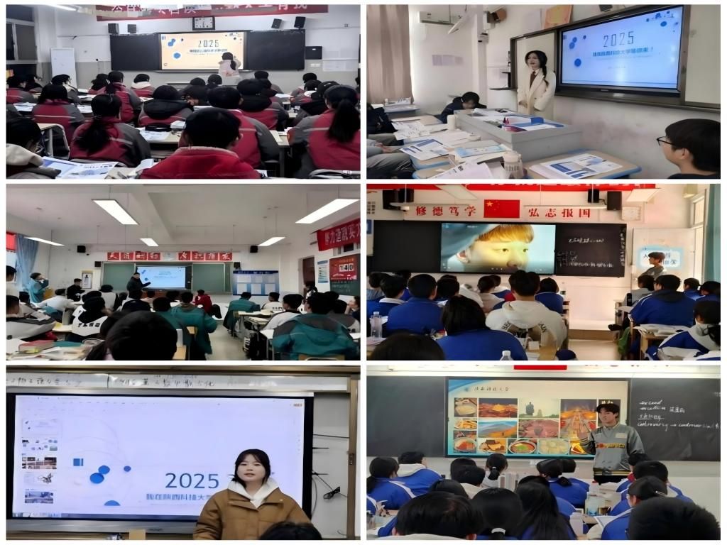寒假期間,陜西科技大學(xué)各學(xué)院學(xué)生積極回訪高中母校,開展豐富多彩的宣傳活動。輕工學(xué)院輕化 242 班陳少龍回到湖南省株洲四中,分享大學(xué)點滴、趣事,還播放《尋秦記》宣傳片展示校園風(fēng)貌,現(xiàn)場氣氛熱烈。新能源 242 班齊思妍在華清中學(xué)結(jié)合自身經(jīng)歷介紹學(xué)校專業(yè)、分享經(jīng)驗、解答疑問,增強(qiáng)學(xué)弟學(xué)妹信心的同時也鍛煉了自身能力。食品、機(jī)電、電控、電智、設(shè)藝、阿院等學(xué)院的諸多同學(xué)也積極行動,分別回訪各自中學(xué),開展多場宣講,覆蓋多地數(shù)千名高中生,從科技創(chuàng)新、社團(tuán)活動等多角度展現(xiàn)科大青年風(fēng)采,激發(fā)學(xué)弟學(xué)妹對大學(xué)生活的向往,為學(xué)校品牌宣傳貢獻(xiàn)力量。