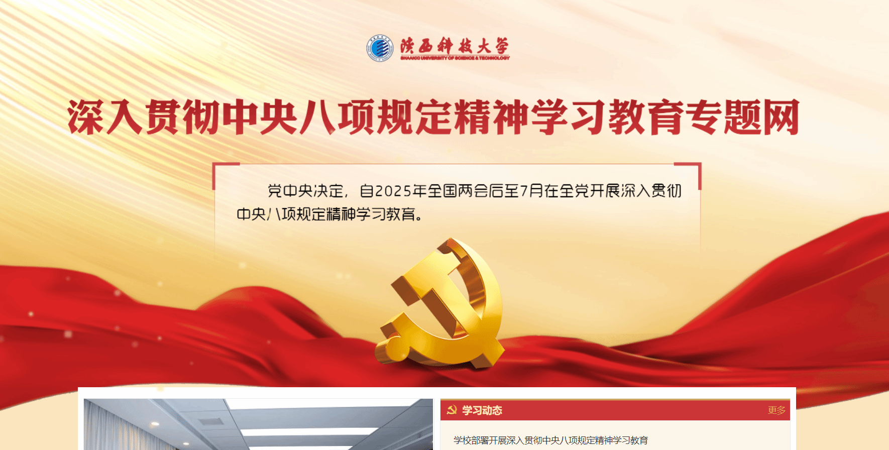 為推動深入貫徹中央八項規(guī)定精神學習教育扎實推進、取得實效,近日我校深入貫徹中央八項規(guī)定精神學習教育專題網(wǎng)站正式開通上線。