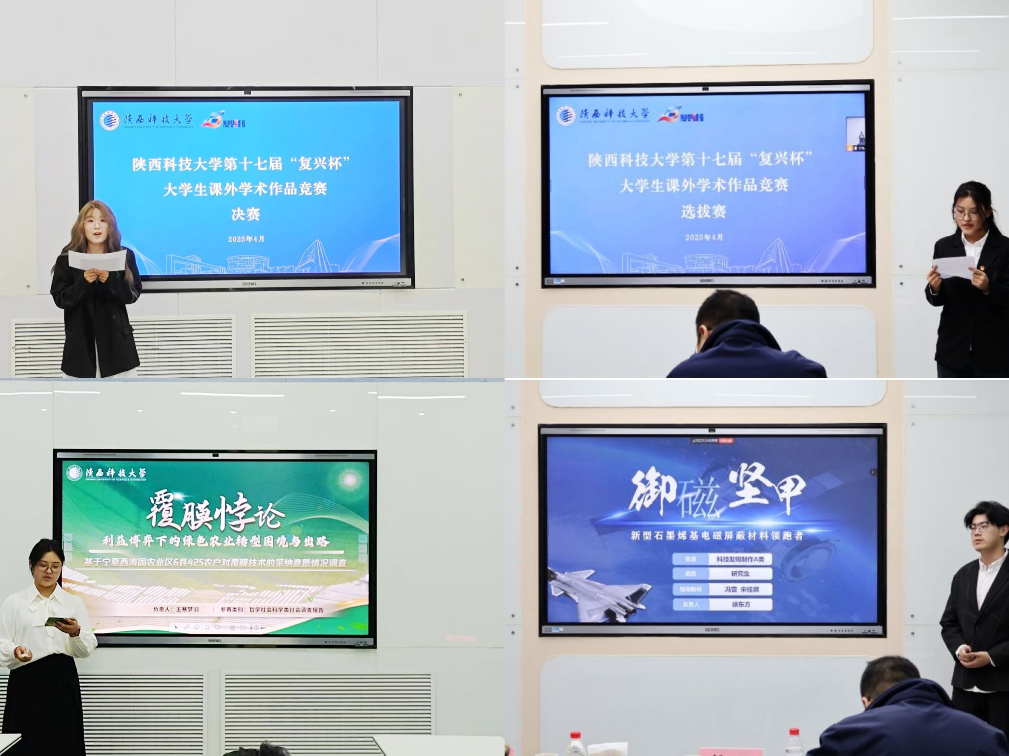 近日,我校第十七屆“復(fù)興杯”大學(xué)生科技創(chuàng)新系列賽事(大學(xué)生創(chuàng)業(yè)計劃競賽、大學(xué)生課外學(xué)術(shù)科技作品競賽)及第十五屆“挑戰(zhàn)杯”陜汽集團陜西省大學(xué)生課外學(xué)術(shù)科技作品競賽校級選拔賽賽程圓滿結(jié)束。本次賽事由校團委聯(lián)合學(xué)工部、研究生院(研工部)、教務(wù)處、科技處、實驗室與設(shè)備管理處、校友總會、招生辦、校學(xué)生會、校研究生會等10個單位共同主辦,并組成大賽組委會,材料科學(xué)與工程學(xué)院、經(jīng)濟與管理學(xué)院負(fù)責(zé)大賽承辦工作。