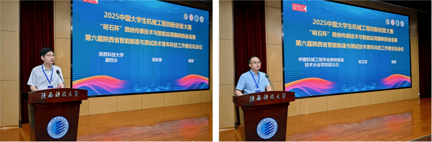 7月5日,由中國(guó)機(jī)械工程學(xué)會(huì)微納制造技術(shù)分會(huì)與陜西省機(jī)械工程學(xué)會(huì)聯(lián)合主辦,陜西科技大學(xué)承辦的2025年中國(guó)大學(xué)生機(jī)械工程創(chuàng)新創(chuàng)意大賽:“明石杯”陜西省省賽暨第六屆陜西省智能制造與測(cè)試技術(shù)青年科技工作者論壇在我校舉辦。副校長(zhǎng)陸趙情、中國(guó)機(jī)械工程學(xué)會(huì)微納制造技術(shù)分會(huì)常務(wù)副主任趙立波、中國(guó)機(jī)械工程學(xué)會(huì)微納制造技術(shù)分會(huì)總干事林啟敬、西安電子科技大學(xué)機(jī)電學(xué)院副院長(zhǎng)王衛(wèi)東、西安交通大學(xué)機(jī)械學(xué)院院長(zhǎng)助理田邊、西北工業(yè)大學(xué)機(jī)電學(xué)院院長(zhǎng)助理陶凱,教務(wù)處、科技處等相關(guān)部門負(fù)責(zé)人出席開幕式。開幕式由機(jī)電工程學(xué)院院長(zhǎng)楊立軍主持。