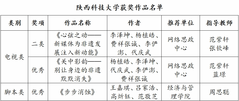 陜西科技大學(xué)3項(xiàng)作品在2024年陜西省大學(xué)生廣播電視公益廣告作品征集活動(dòng)中獲獎(jiǎng)