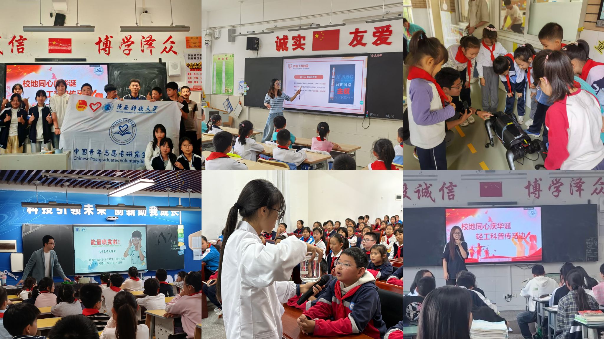 化工學(xué)院筑夢領(lǐng)航研究生黨支部等多名優(yōu)秀黨員與新生代表走進新興小學(xué)、經(jīng)開一小,帶去了以“趣味解鎖科學(xué)大門”為主題的化學(xué)科普秀,“大象牙膏”“火山噴發(fā)”“變色玫瑰”等趣味實驗引得孩子們驚呼連連。機電學(xué)院研究生代表攜“紅心迎國慶·科創(chuàng)進校園”活動走進經(jīng)開五小,通過展示了無人機、3D打印筆等研究生自主研發(fā)的科創(chuàng)作品,為小學(xué)生講述了錢學(xué)森、袁隆平等科學(xué)家的科研攻堅與報國故事,讓拳拳愛國心、殷殷報國志在孩子們心中生根發(fā)芽。
