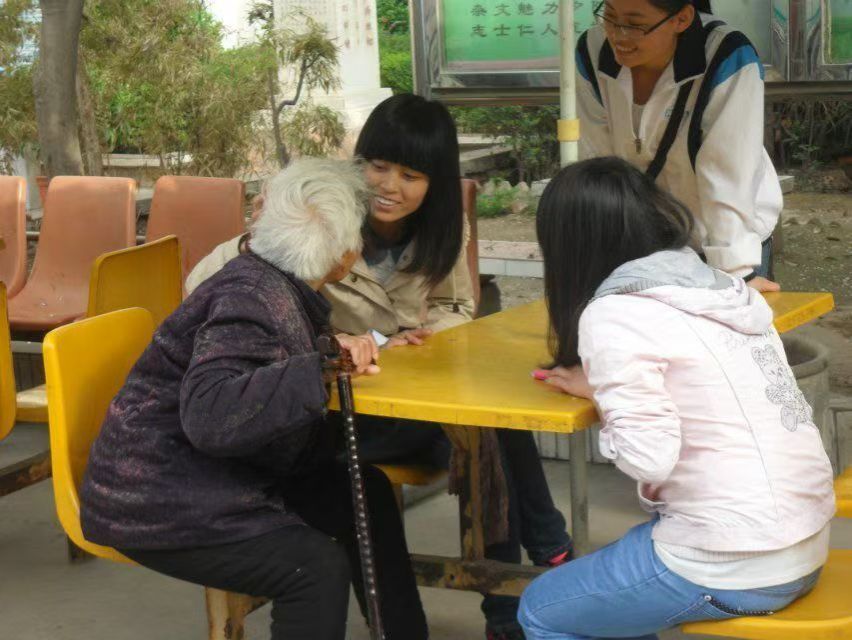 大學(xué)時(shí)期在草灘敬老院參與志愿服務(wù)活動(dòng)(左二為馮鎖莉)