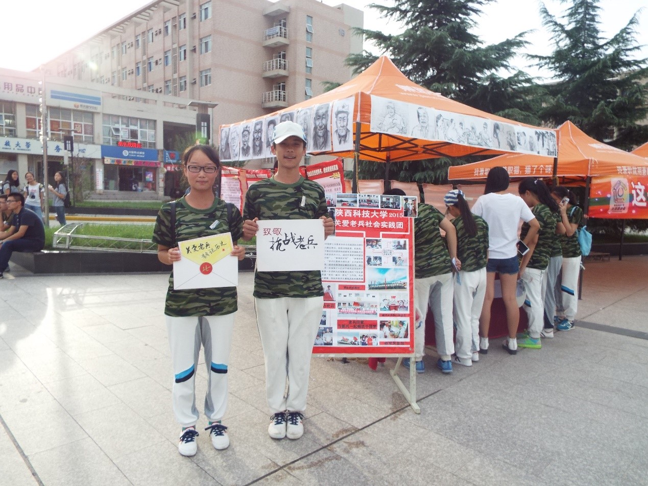 值此抗日戰(zhàn)爭暨世界反法西斯戰(zhàn)爭勝利70周年之際,9月11日下午,資源與環(huán)境學院“紅色記憶·延續(xù)的中國夢”關愛老兵服務團在我校舉辦暑期社會實踐成果展,將暑期在陜西、四川開展的實踐活動紀錄作品和大學生的親歷感受以及紅色精神帶入校園,感動和激勵更多的青年學子。