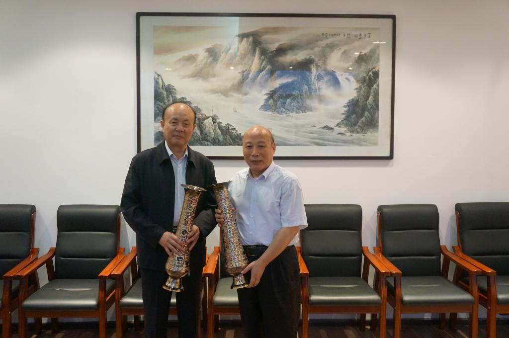 校黨委書記潘中偉(左二)會(huì)見了我校紙77級(jí)校友、新疆校友會(huì)會(huì)長(zhǎng)、新疆維吾爾自治區(qū)商務(wù)廳副廳長(zhǎng)李建杰一行