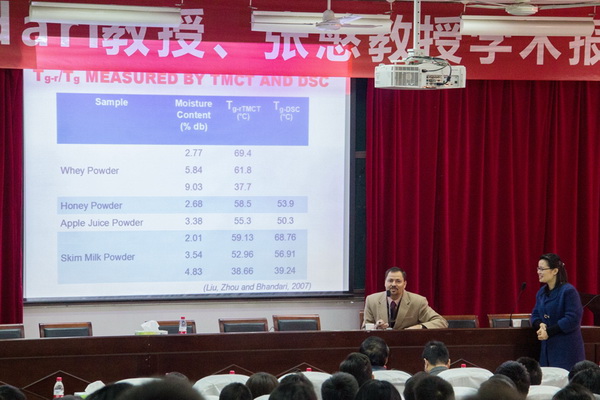 應(yīng)機(jī)電工程學(xué)院的邀請(qǐng),澳大利亞昆士蘭大學(xué)貝施·班達(dá)里(Bhesh Bhandari)教授和江南大學(xué)張慜教授12月23日聯(lián)袂來(lái)我校進(jìn)行學(xué)術(shù)交流。上午九點(diǎn),兩位教授在3號(hào)教學(xué)樓101教室分別作了題為《食品材料中的玻璃態(tài)及其對(duì)加工和穩(wěn)定性的影響》和《農(nóng)產(chǎn)品加工總體趨勢(shì)及其高新技術(shù)》的學(xué)術(shù)報(bào)告,機(jī)電工程學(xué)院、生命科學(xué)與工程學(xué)院的近200名研究生和部分教師參加了報(bào)告會(huì)。報(bào)告會(huì)前,還舉行了簡(jiǎn)短的儀式,為兩位教授頒發(fā)了機(jī)電學(xué)院客座教授聘書(shū)。