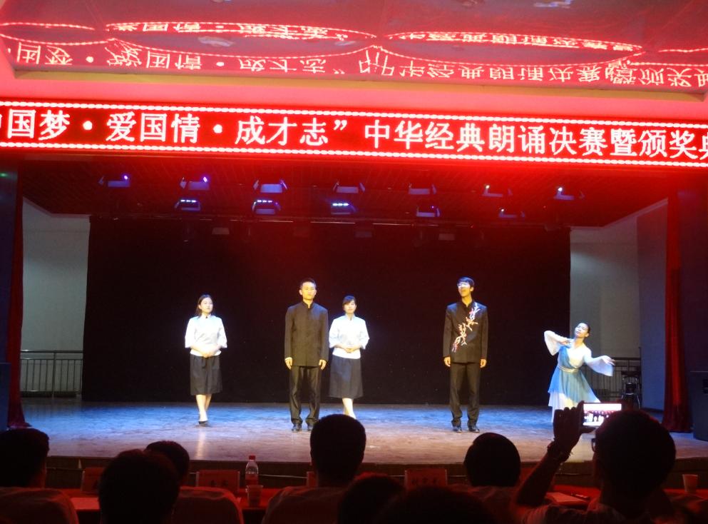 由校團委、校學生會聯(lián)合主辦,歷時2個月的我校“中國夢,愛國情,成才志”中華經典誦讀比賽于5月23號圓滿畫上句號。