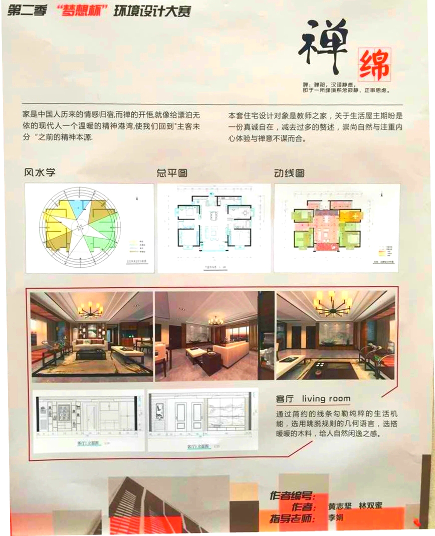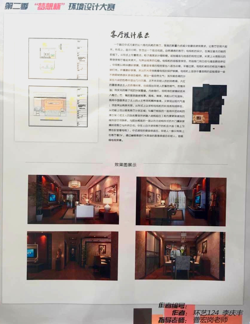 本次大賽由校工會、校團(tuán)委、設(shè)藝學(xué)院主辦,旨在為陜科大第二期教職工住宅戶主提供裝修方案,以功能性和人性化為設(shè)計重點(diǎn),同時兼顧滿足教職工對室內(nèi)裝潢的審美需求,著力體現(xiàn)科大學(xué)生的主人翁精神和設(shè)計素養(yǎng)。自去年年底大賽啟動以來,共計布展120幅裝修方案,展出70余天,已被教職工采納的方案14套,獲獎方案17套。一等獎代表作品二等獎代表作品 經(jīng)過專業(yè)評審組的合議,設(shè)藝學(xué)院環(huán)藝專業(yè)2011級黃志堅、林雙蜜組合的180平米現(xiàn)代中式風(fēng)格裝修方案憑借極具震撼的視覺效果、實用時尚的設(shè)計思路、飽含傳統(tǒng)元素的設(shè)計理念獲得總冠軍,最終捧得“夢想杯”;2012級學(xué)生楊惠的100平米簡約現(xiàn)代風(fēng)格、李慶豐的140平米現(xiàn)代中式風(fēng)格、周斯昊的180平米現(xiàn)代中式風(fēng)格獲得亞軍;符益東的100平米北歐風(fēng)格、雍錦軒的120平米現(xiàn)代簡約風(fēng)格、孫鈺瑩的140平米簡約田園混搭裝修方案獲得季軍。張越等十名學(xué)生獲得了優(yōu)秀獎。 作為設(shè)藝學(xué)院“畫筆點(diǎn)綴青春,設(shè)計服務(wù)校園“的系列品牌活動之一,第二屆“夢想杯”為陜科大教職工提供了符合居住需求的設(shè)計方案亦鍛煉了同學(xué)們的專業(yè)能力,起到了促進(jìn)學(xué)風(fēng)、提振士氣的作用,也符合學(xué)院結(jié)合專業(yè)開展校園文化活動,解決實際問題的工作思路。頒獎現(xiàn)場環(huán)藝教研室?guī)熒硎荆骸皦粝氡弊尭嗤瑢W(xué)感受到了環(huán)藝設(shè)計的獨(dú)特以及艱辛,每個精美的方案都來之不易。設(shè)藝學(xué)院執(zhí)行院長詹秦川在總結(jié)中客觀地對本屆夢想杯做出了點(diǎn)評,指出此次活動的設(shè)計水準(zhǔn)距離高標(biāo)準(zhǔn)還有一定差距,設(shè)計不僅要滿足一般市場的審美需求,更要盡力得到專業(yè)人士的認(rèn)可,教研室老師應(yīng)該進(jìn)一步發(fā)揮校園活動第二課堂的功能,只有在實踐中教學(xué)方能提升育人的質(zhì)量。(責(zé)任編輯:杜楊 學(xué)生編輯:張寧)