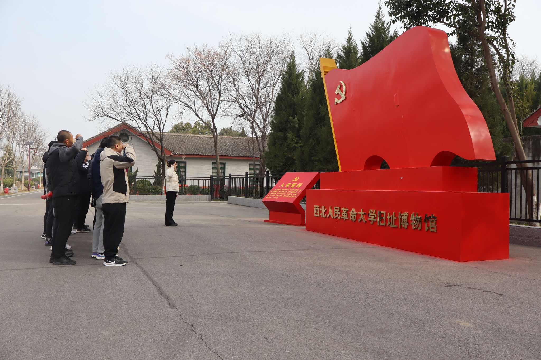 本次活動旨在通過“沉浸式現(xiàn)場教學(xué)、儀式化黨性錘煉、互動式實(shí)踐研學(xué)”的三維教育模式,探索構(gòu)建理論學(xué)習(xí)、黨性剖析、實(shí)踐研學(xué)深度融合的黨員教育管理新模式。3月8日上午,體育部全體教職工首先來到西北人民革命大學(xué)舊址,在講解員的引導(dǎo)下,駐足觀看西北人民革命大學(xué)“忠誠老實(shí)、實(shí)事求是、團(tuán)結(jié)互助、艱苦樸素”質(zhì)樸校風(fēng),穿越時(shí)空感受老一輩革命家“忠誠于黨、艱苦奮斗”的精神品格,面對復(fù)原的歷史場景和珍貴文物,黨員和教師們駐足凝視,深刻體悟“為黨育人、為國育才”的初心使命。在紅色黨旗墻前,預(yù)備黨員在鮮紅黨旗下莊嚴(yán)宣誓,全體黨員重溫入黨誓詞,錚錚誓言回蕩在革命舊址上空,彰顯新時(shí)代科大體育人的堅(jiān)定信念。在高陵博物館,全體教職工一邊追尋高陵地區(qū)紅色斗爭的歷史記憶,另一邊參觀現(xiàn)代農(nóng)業(yè)發(fā)展的時(shí)代成就,感受著歷史變遷的“涇渭分明”,又感念到革命的火種代代相傳。整個(gè)活動設(shè)計(jì)為“參觀-宣誓-研學(xué)”的實(shí)踐鏈條,采取“歷史現(xiàn)場教學(xué)+現(xiàn)實(shí)對照反思”的模式,有效推動黨性教育從認(rèn)知認(rèn)同向?qū)嵺`轉(zhuǎn)化。