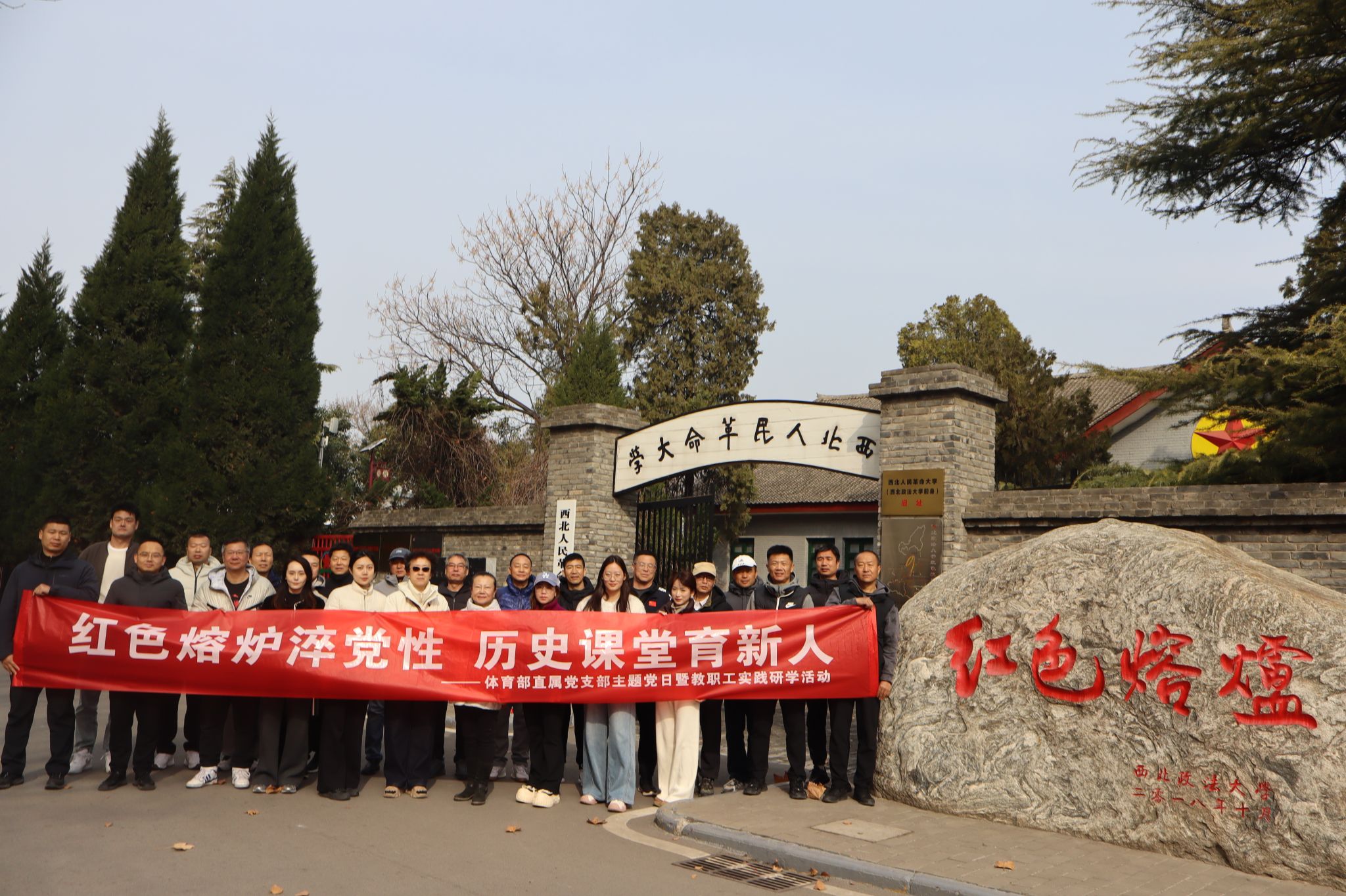 為深化2024年度民主生活會和組織生活會的理論學(xué)習(xí)和對照檢視成效,結(jié)合2025年度工作計(jì)劃,3月8日上午,體育部直屬黨支部組織全體黨員和教職工赴高陵開展了“紅色熔爐淬黨性 歷史課堂育新人”主題黨日暨師德師風(fēng)教育實(shí)踐研學(xué)活動,先后參觀了西北人民革命大學(xué)舊址和高陵博物館。