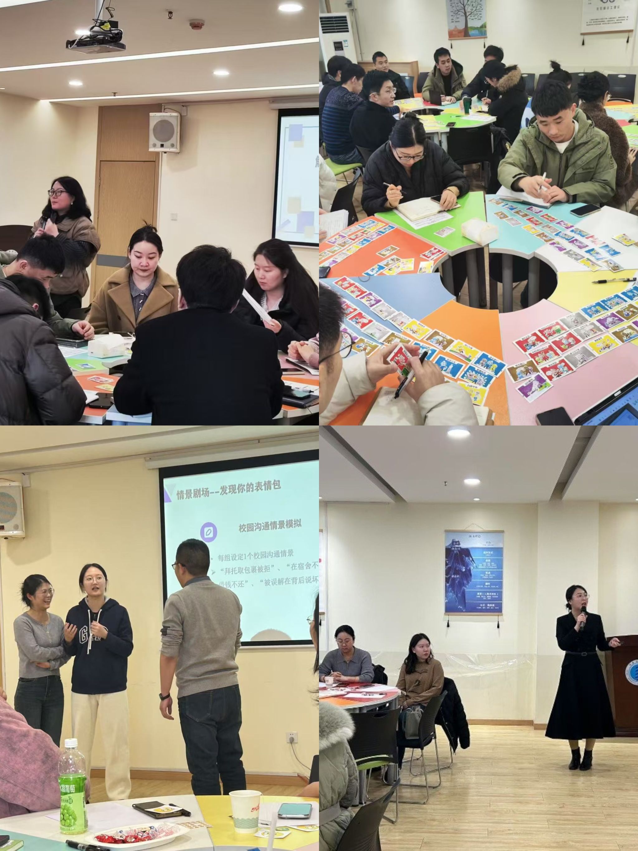 示范課程采用分年級(jí)、分專題階梯式課程框架,將自我認(rèn)識(shí)、人際關(guān)系、情感教育、情緒調(diào)節(jié)四大主題融入不同學(xué)段,實(shí)現(xiàn)理論講授、角色扮演、情境模擬等實(shí)踐環(huán)節(jié)深度融合,針對(duì)性補(bǔ)強(qiáng)心理健康教育實(shí)踐短板,切實(shí)提升心理健康教育從知識(shí)傳授到行為養(yǎng)成的轉(zhuǎn)化效能。在示范教學(xué)環(huán)節(jié)中,主講老師針對(duì)學(xué)生心理健康教育實(shí)踐中普遍存在的問題及其解決策略進(jìn)行了探討交流,并現(xiàn)場(chǎng)演示了大六人格卡牌的解讀技巧;細(xì)致講解了表情卡片的應(yīng)用及四種溝通模式,組織了分組場(chǎng)景演繹活動(dòng);引入冰山理論解析心理深層需求,教授輔導(dǎo)員處理學(xué)生心理問題及矛盾調(diào)解技巧;指導(dǎo)使用一致性溝通三步法,倡導(dǎo)以正確的方式表達(dá)個(gè)人訴求,以培養(yǎng)良好心理素質(zhì)和行為習(xí)慣。