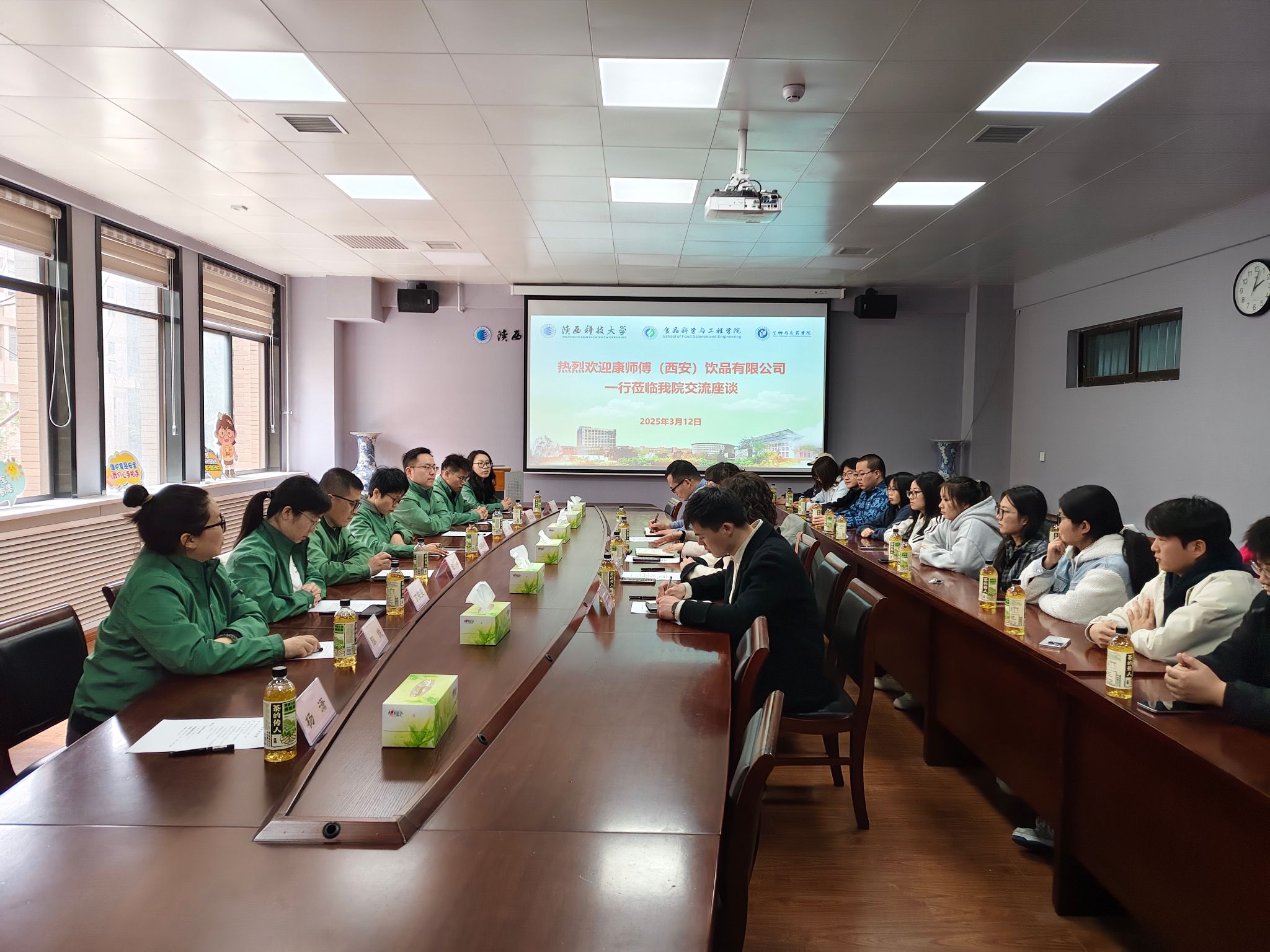 3月12日下午,康師傅(西安)飲品有限公司食品安全總監(jiān)王秋峰一行來我校食品科學(xué)與工程學(xué)院開展合作交流。學(xué)院黨委副書記孫敏、專任教師陳劍、輔導(dǎo)員及學(xué)生代表參加座談會。