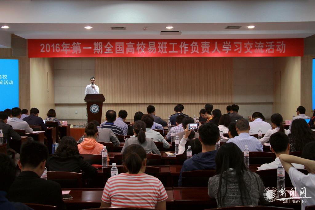 2016年第一期全國(guó)高校易班工作負(fù)責(zé)人學(xué)習(xí)交流會(huì)于5月20日在中國(guó)石油大學(xué)(華東)舉行。教育部易班發(fā)展中心主任朱明倫和來自全國(guó)25所(20所部屬和5所省屬)易班共建高校的負(fù)責(zé)人參加會(huì)議。四所高校(中國(guó)石油大學(xué)、東華大學(xué)、陜西科技大學(xué)、福州大學(xué))易班負(fù)責(zé)人先后發(fā)言,介紹本校易班建設(shè)情況并交流建設(shè)經(jīng)驗(yàn)。我校學(xué)工部副部長(zhǎng)楊建(主持工作)代表學(xué)校作交流發(fā)言。
