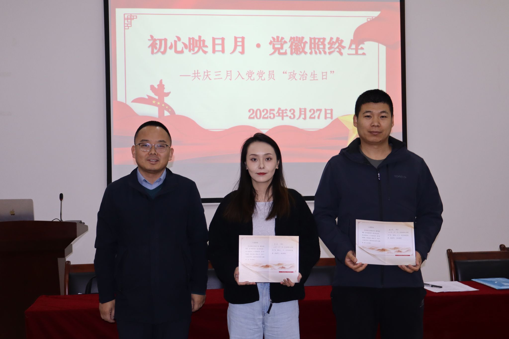 儀式第一項由祁懷遠為三月過政治生日黨員程菡、秦永修兩名教師黨員頒發(fā)“政治生日”卡,過“政治生日”黨員重溫入黨誓詞。
