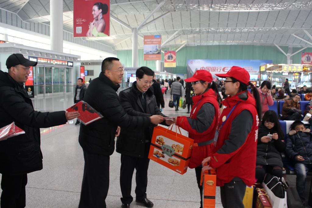2月3日下午4時(shí),團(tuán)省委副書記單舒平、校黨委副書記溫鋒一行來到西安鐵路局西安北站,慰問在這里參加春運(yùn)志愿服務(wù)的陜科大學(xué)子。自全國青年志愿服務(wù)春運(yùn)——“暖冬行動(dòng)”在西安北站啟動(dòng)起,我校共組織60名在校大學(xué)生參加此次春運(yùn)志愿服務(wù)。