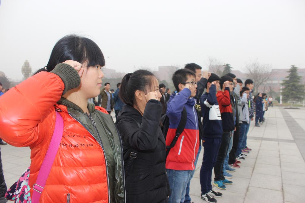 早晨7點,129名學生在福慧圖書館南廣場舉行了升旗儀式,全體學生面向國旗,歌唱國歌,莊嚴宣誓——“銘記歷史,勿忘國恥;熱愛祖國,服務人民;勇于拼搏,積極進取;謹記校訓,奮發(fā)圖強。開拓創(chuàng)新,共創(chuàng)輝煌?!痹谶@堅定的聲音中,道出了學生們的愛國主義情懷。
