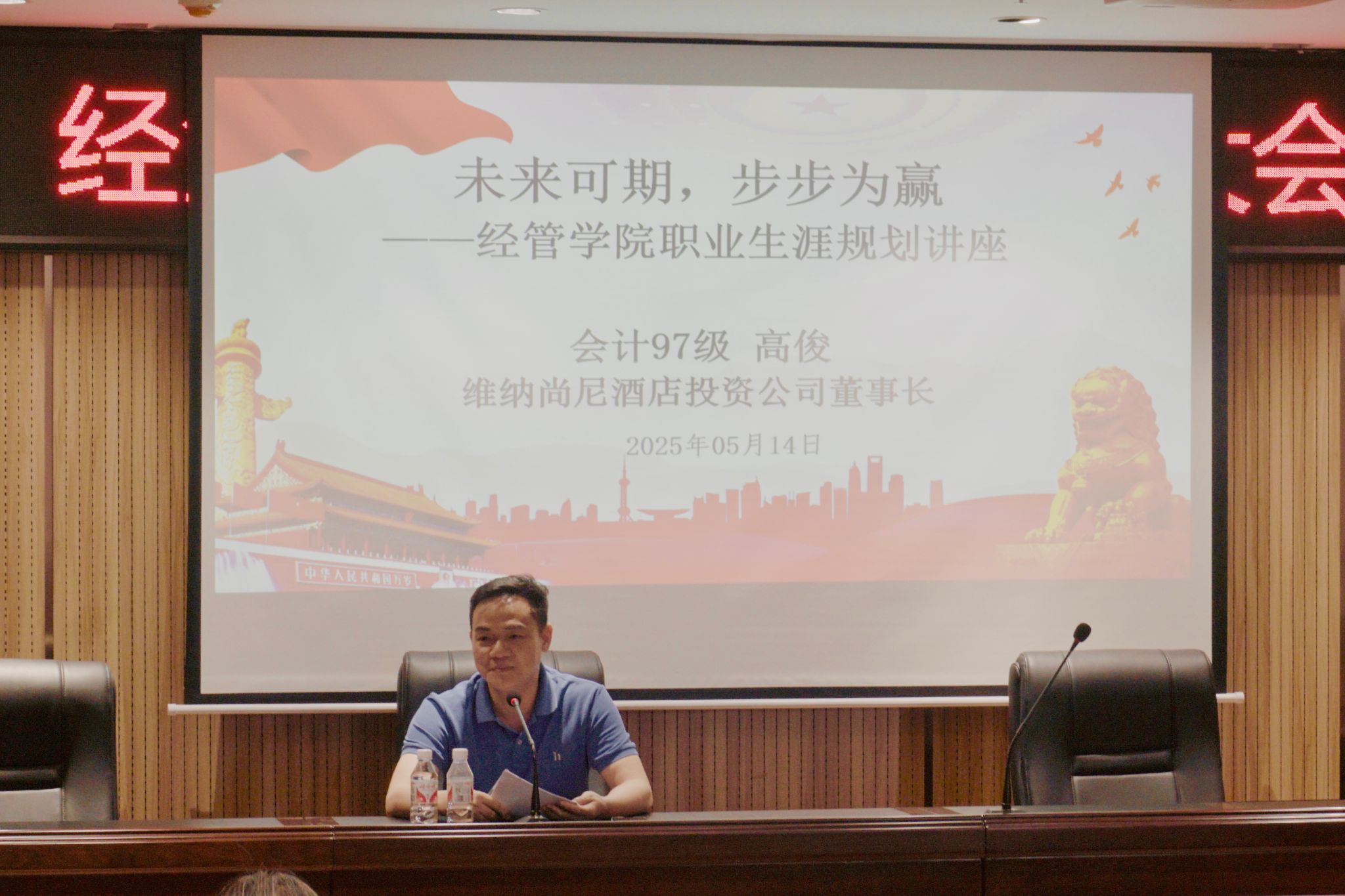 為推動(dòng)經(jīng)管學(xué)院就業(yè)工作,提升經(jīng)管學(xué)子職業(yè)生涯規(guī)劃意識(shí),明晰職業(yè)發(fā)展路徑。5月14日,學(xué)院特邀優(yōu)秀校友會(huì)計(jì)專業(yè)97級(jí)高俊做題為《未來(lái)可期,步步為贏—經(jīng)管學(xué)院職業(yè)生涯規(guī)劃》講座。會(huì)計(jì)系相關(guān)老師、就業(yè)輔導(dǎo)員、畢業(yè)生及低年級(jí)學(xué)生代表120余人參加本次講座。