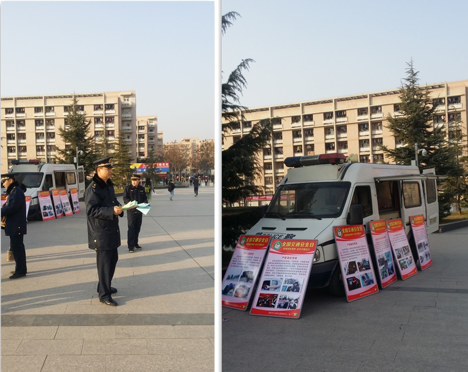 活動采用展板、現(xiàn)場發(fā)放資料和視頻播放的方式宣傳交通安全的重要性。區(qū)交通局在《致廣大師生的一封信》中提醒廣大師生返鄉(xiāng)、探親、旅游途中不要乘坐非法營運的黑車和講解如何辨別黑車。未央交警大隊用交通宣傳車播放交通違法案例視頻,一個個令人唏噓的交通事故現(xiàn)場,說明所有的交通參與者都應(yīng)該遵章守法,敬畏生命。未央交警大隊還制作了20多塊展板,圖文并茂的宣傳了交通安全知識,倡導(dǎo)遵章守規(guī)、文明出行。