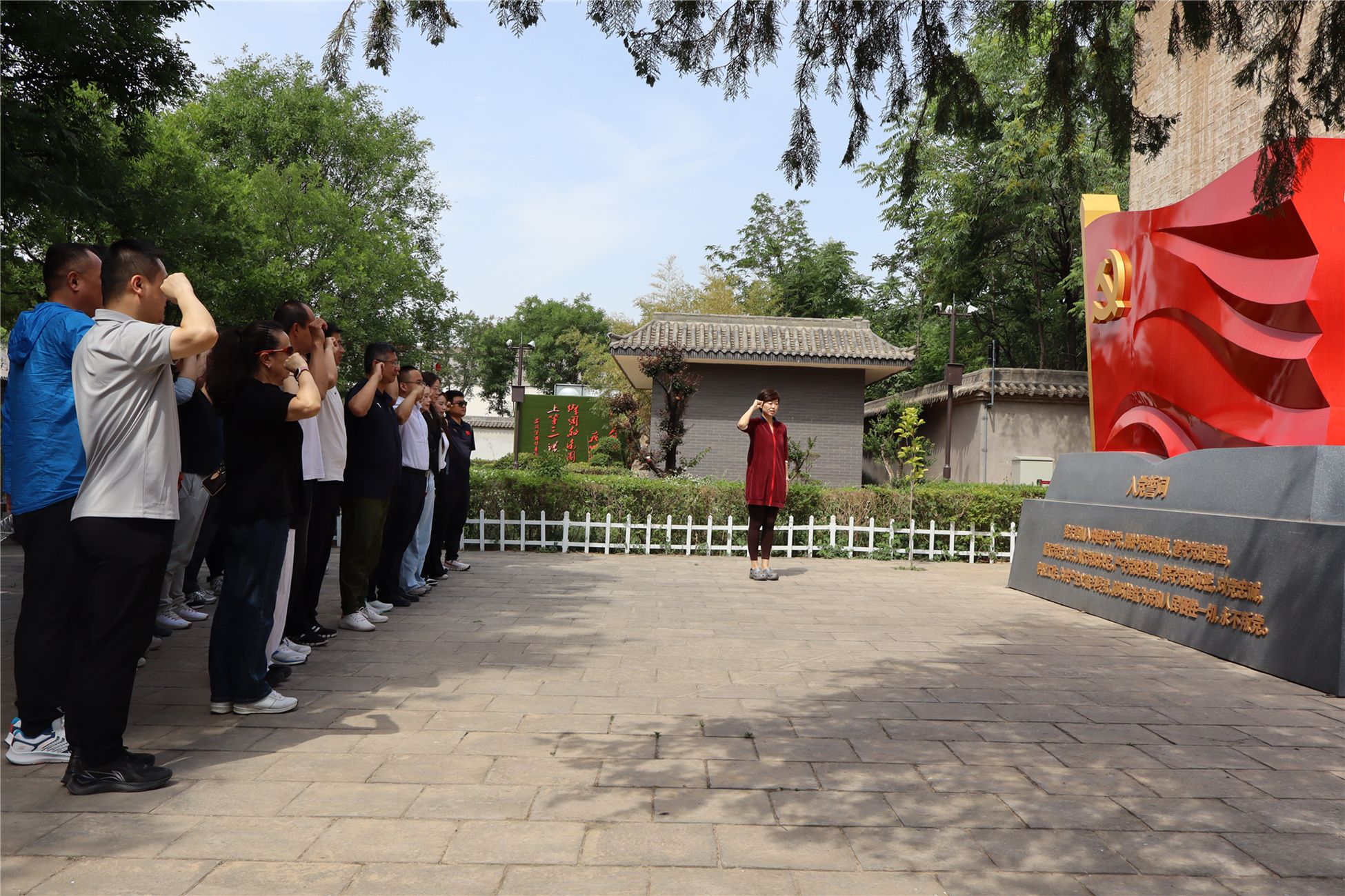 為進(jìn)一步強(qiáng)化黨員黨性修養(yǎng),厚植師德師風(fēng)建設(shè)根基,5月15日上午,體育部全體教職工赴涇陽(yáng)縣安吳青訓(xùn)班舊址、云陽(yáng)鎮(zhèn)八路軍115師誓師抗日紀(jì)念出征地,開展“賡續(xù)紅色血脈礪初心、傳承優(yōu)良作風(fēng)擔(dān)使命”主題黨日暨師德師風(fēng)實(shí)踐研學(xué)活動(dòng), 通過(guò)實(shí)地參觀、重溫誓詞、過(guò)“政治生日”等形式,引導(dǎo)全體教師銘記紅色歷史,厚植教育情懷,強(qiáng)化使命擔(dān)當(dāng)。