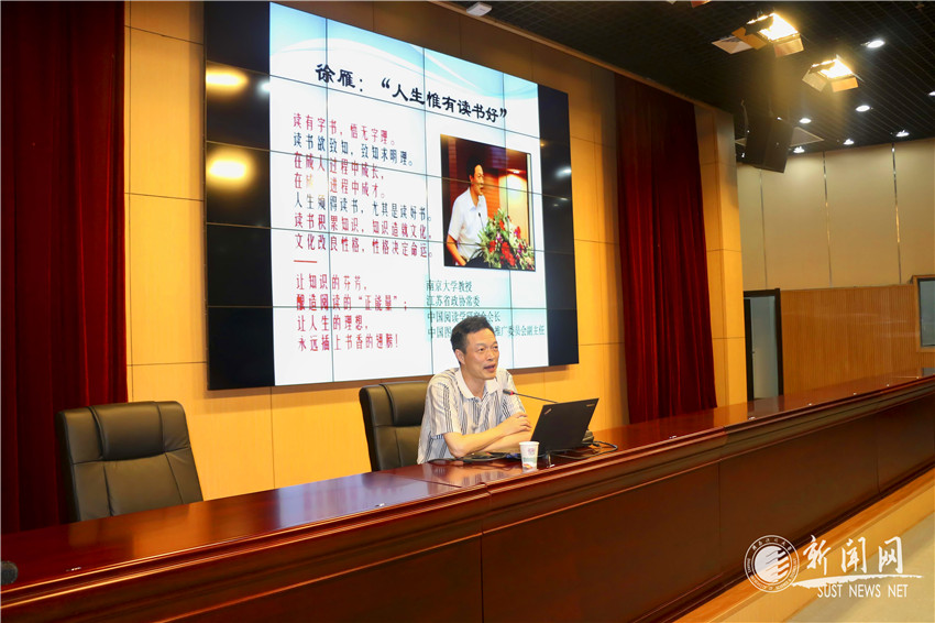 為更好地開展校園閱讀推廣,促進書香校園建設,6月15日,著名閱讀推廣專家、南京大學徐雁教授應邀來我校圖書館,為廣大師生做讀書報告并與圖書館工作人員進行交流座談。