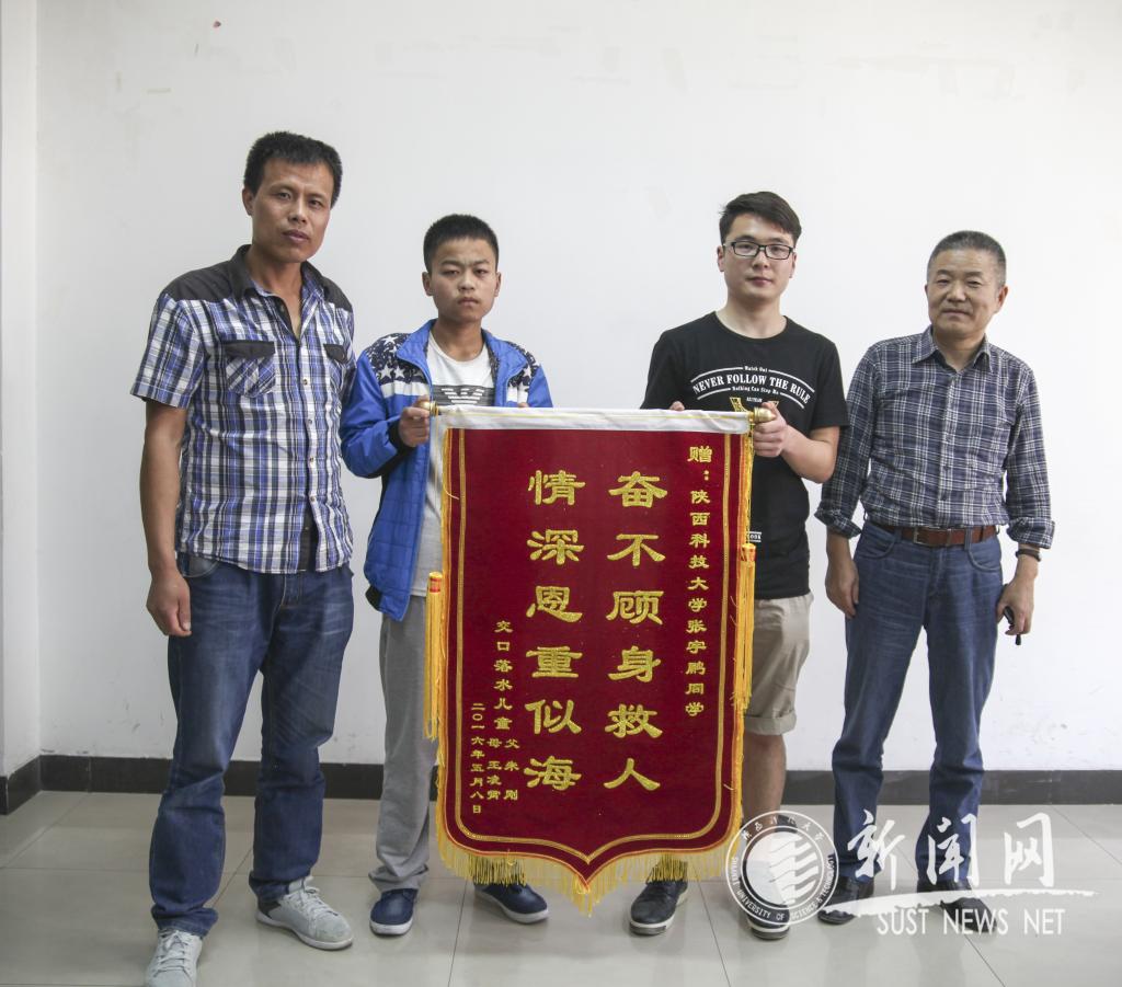 5月2日14時(shí)左右,我校大學(xué)生張宇鵬和兩名騎友回校途中經(jīng)過臨潼區(qū)油槐街道一號橋水渠時(shí)救出一位溺水的十六歲少年,5月11日下午兩點(diǎn),朱某一家?guī)е兄x信和繡有“情深恩重似海,奮不顧身救人”的錦旗來到電氣與信息工程學(xué)院致謝。