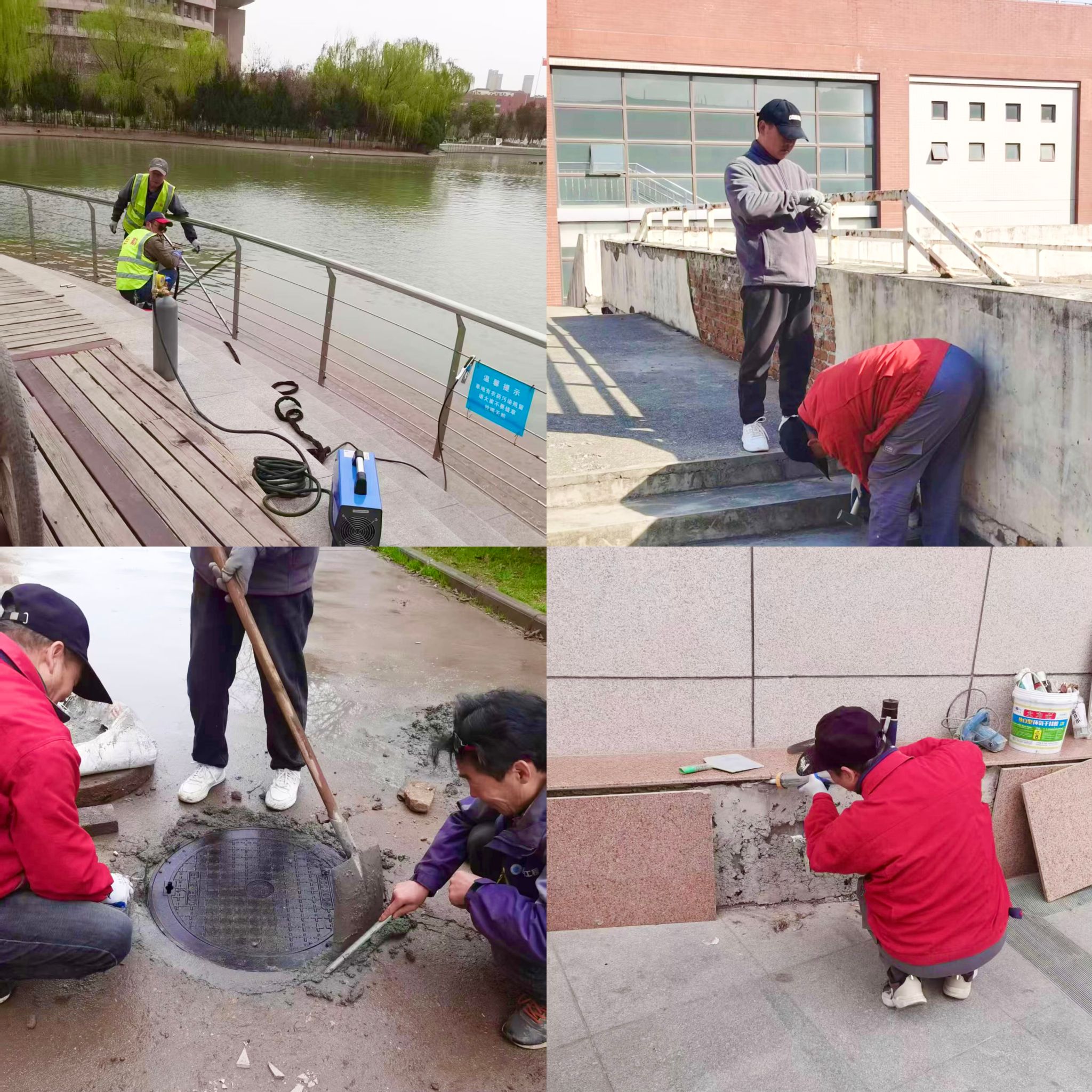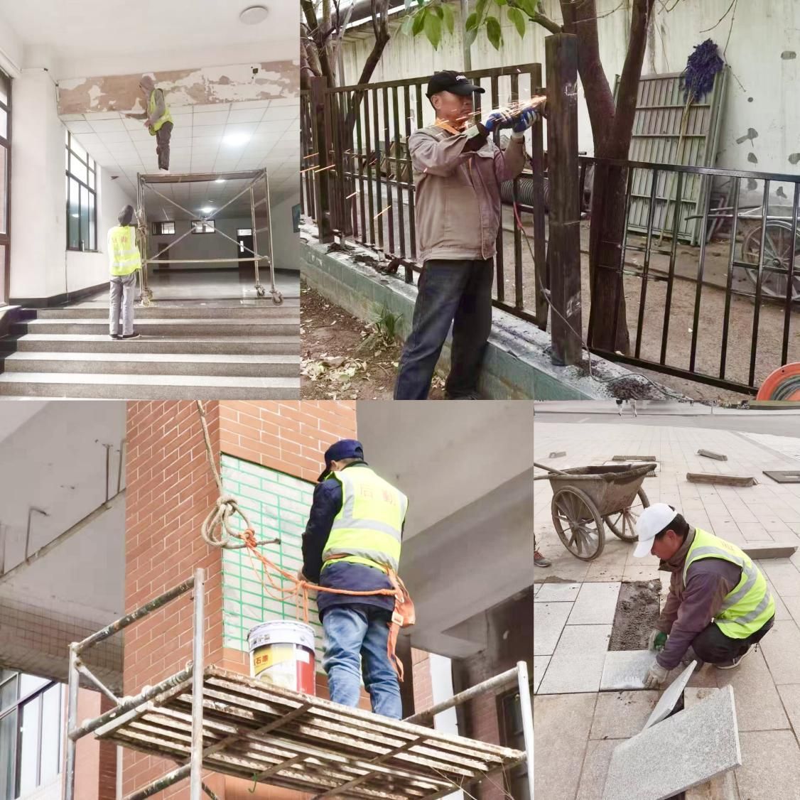 后勤服務(wù)集團恪守“安全第一、服務(wù)至上”的工作理念。針對教學(xué)樓墻皮脫落問題,組織專業(yè)施工團隊展開全面排查與徹底修復(fù),施工過程嚴格把控材料與工藝標準,確保修復(fù)質(zhì)量,避免反復(fù)脫落。為最大限度減少對師生教學(xué)科研的影響,維修工作特意安排在夜間或者節(jié)假日等休息時間進行。近期,先后完成了圖書館吊頂維修、教學(xué)樓AB三層13間教室講臺地板磚維修更換、污水站60檔鐵藝圍欄更換及逸夫樓前石材路修補等12項重點工程,月均處理零星維修百余項,全方位維護校園設(shè)施安全與美觀。